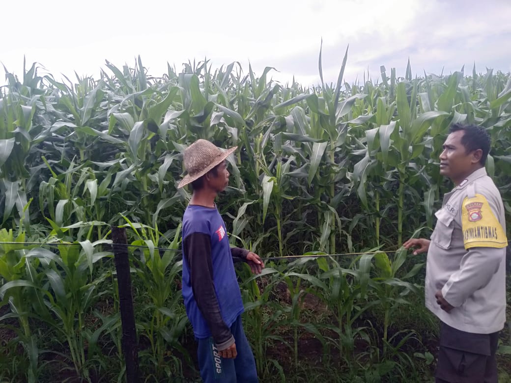 Bhabinkamtibmas Desa Tartar Polsek Sekongkang, Bripka Abd. Syahid, terus berupaya melakukan pendampingan dan memotivasi warga binaannya yang merupakan petani jagung.
