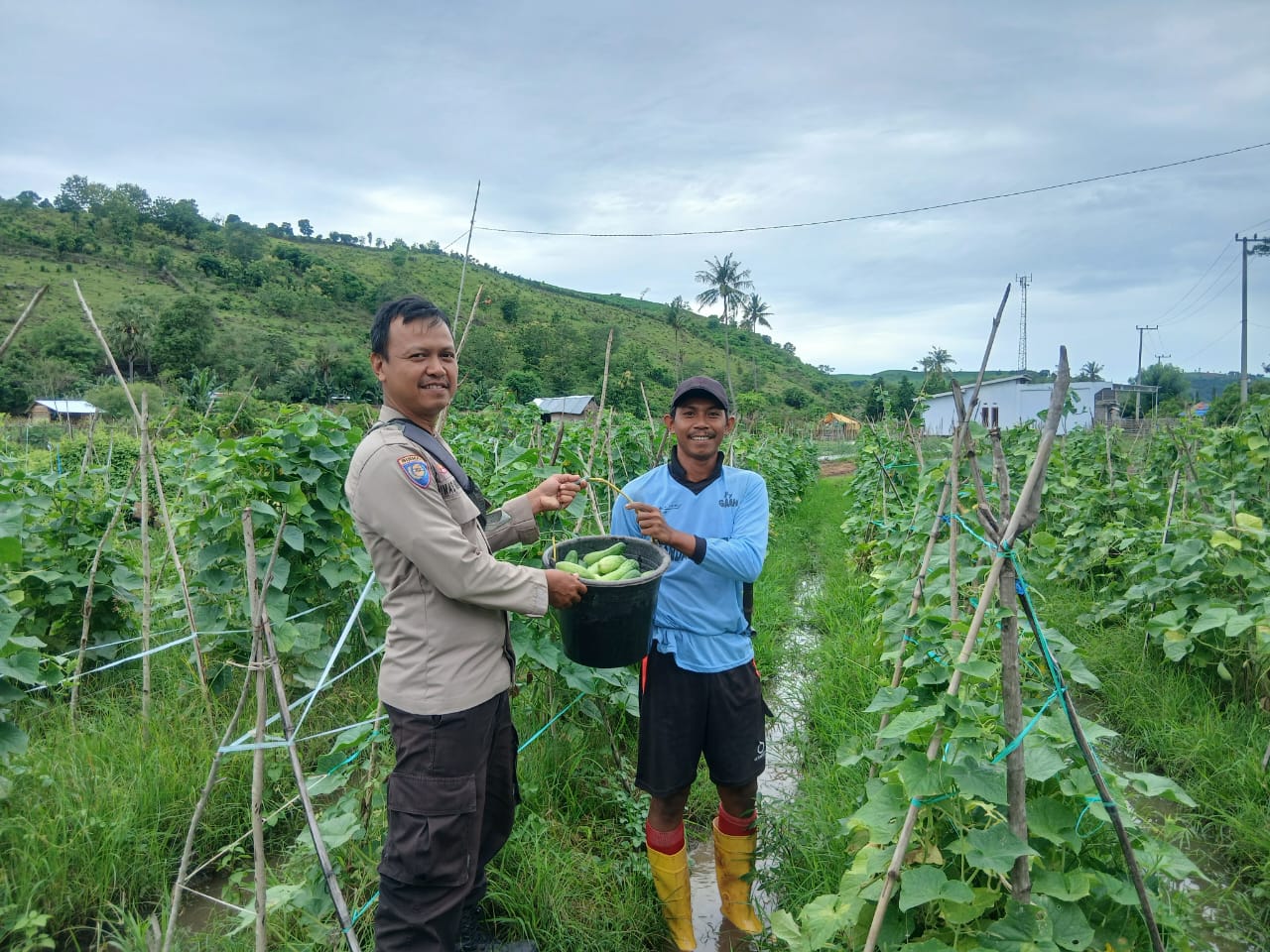 Dalam upaya mendukung Program Ketahanan Pangan Nasional Menuju Indonesia Emas 2045, Bhabinkamtibmas Desa Mbuju Polsek Kilo, Bripka Dkmas Sanjaya Putra, melaksanakan pemantauan lahan timun milik salah satu warga binaannya, Bapak Muklis. Kegiatan ini berlangsung di Dusun Matompo, Desa Mbuju, Kecamatan Kilo, Kabupaten Dompu, pada Selasa pagi (21/01/2025) pukul 09.30 WITA hingga selesai.