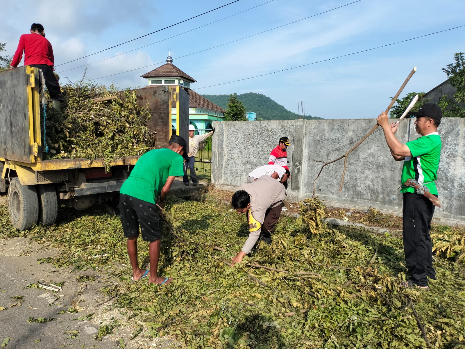 Dalam aksi gotong royong tersebut, petugas dan masyarakat bekerja sama membersihkan ranting pohon bekas tebangan akibat hujan angin yang melanda hampir seluruh wilayah Kecamatan Jereweh beberapa hari lalu sehingga aman bagi pengguna jalan.