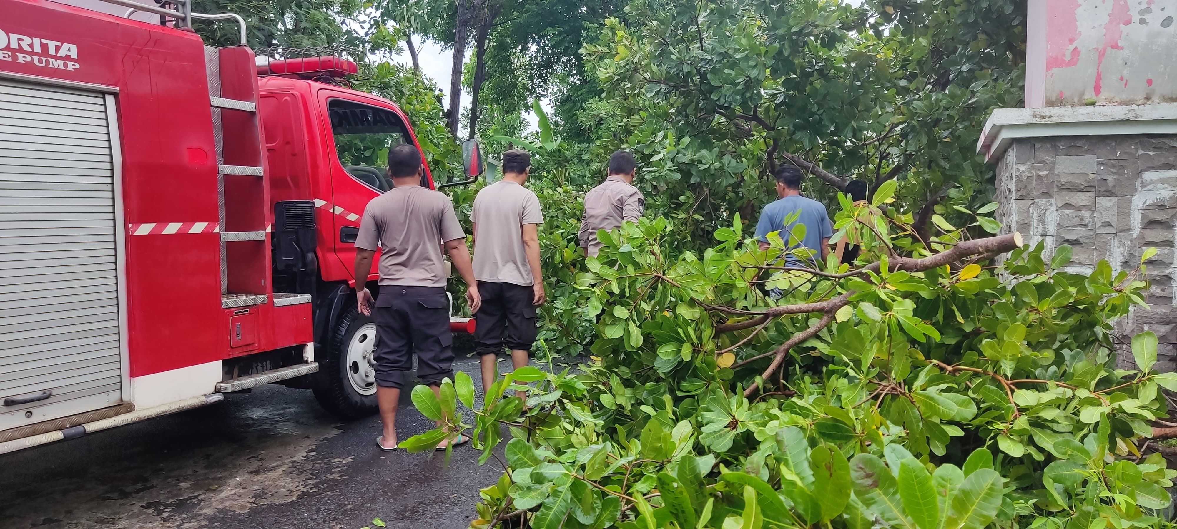 “Selain patung kuda ada sejumlah pohon tumbang akibat angin kencang, dan saat ini Polsek Kayangan bersama anggota Pos Ramil Kayangan dan, UPTD Damkar Kecamatan Kayangan dengan dibantu masyarakat berupaya mengevakuasi pohon tumbang di 5 titik berbeda”.