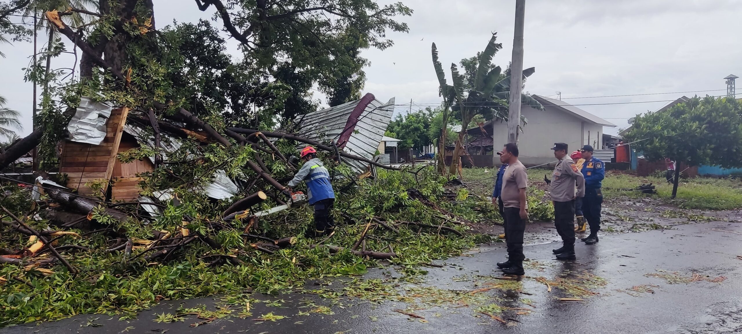 “Pada peristiwa dahan tumbang ini terdapat sebuah bangunan yang tertimpa yang mana bangunan tersebut merupakan lokasi pangkas rambut milih warga setempat dan mengalami rusak parah akibat tertimpa dahan pohon”.