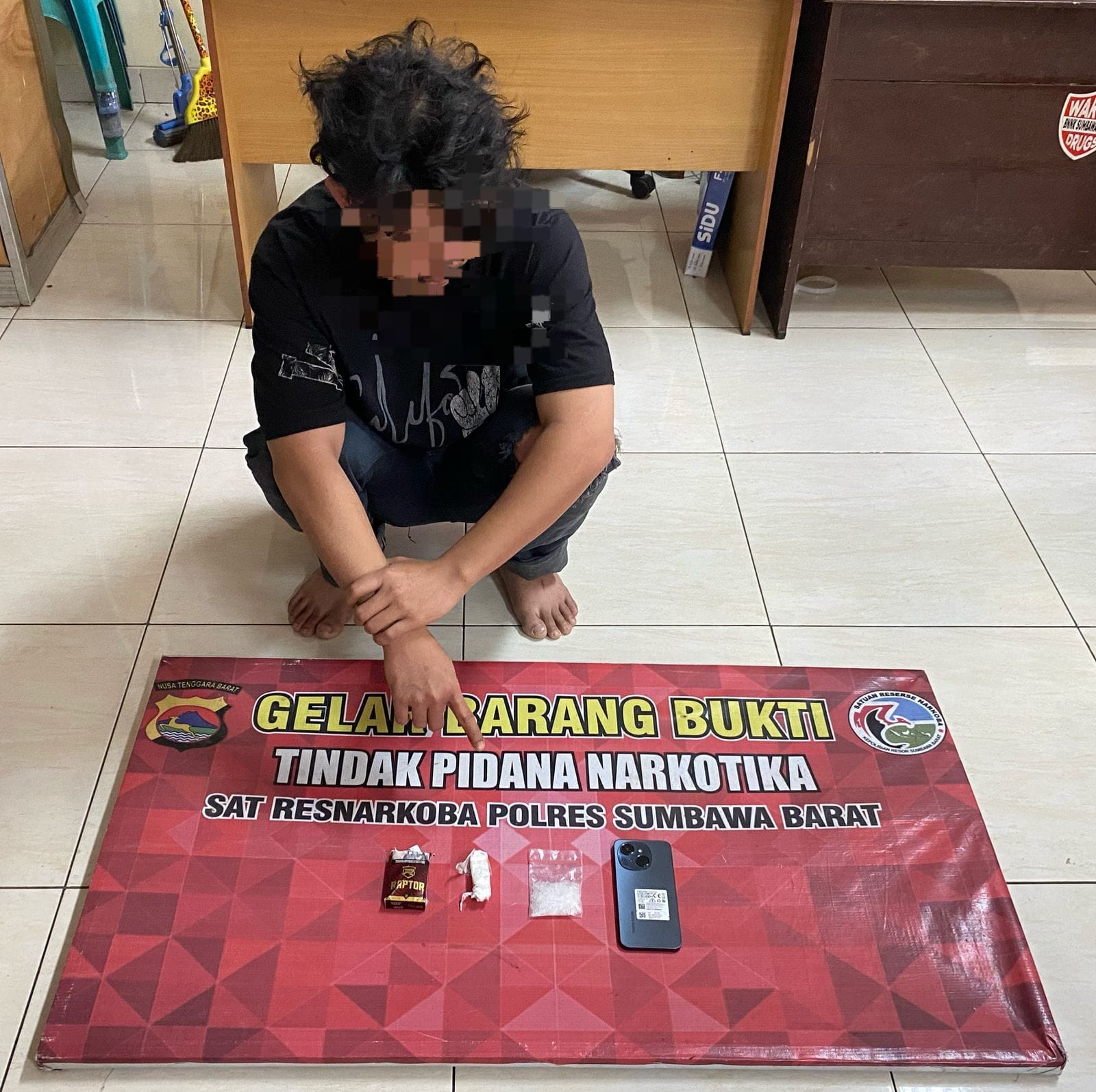 “Pengungkapan penyalahgunaan/peredaran narkoba tersebut oleh Kasat Resnarkoba, Iptu I Made Mas Mahayuna, S.H., M.H., bersama anggotanya/Tim Opsnal Sat Resnarkoba dan berhasil mengamankan satu orang terduga pelaku (RS) 22 tahun, asal dari Kecamatan Tarano Sumbawa Besar yang kesehariaannya bekerja sebagai sopir di salah satu perusahaan sub kontraktor di areal tambang di Maluk,” ungkap Kapolres Sumbawa Barat, AKBP Yasmara Harahap, S.I.K., melalui Kasi Humas, AKP Zainal Abidin, S.H.