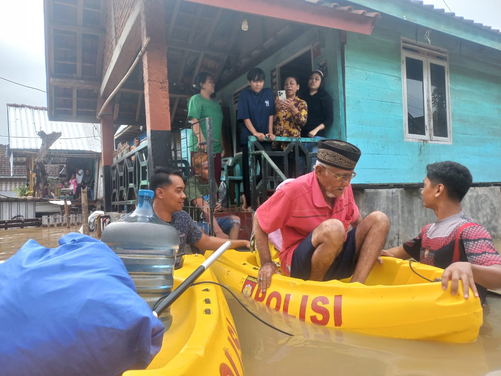 Sumbawa Barat NTB – Bencana banjir yang melanda Kota Taliwang terdapat beberapa titik lokasi genangan air yang cukup dalam. Satuan Samapta Polres Sumbawa Barat tetap siaga bencana untuk melakukan evakuasi warga terutama yang lanjut usia dengan menggunakan perahu dayung, Selasa (11/02/2025).