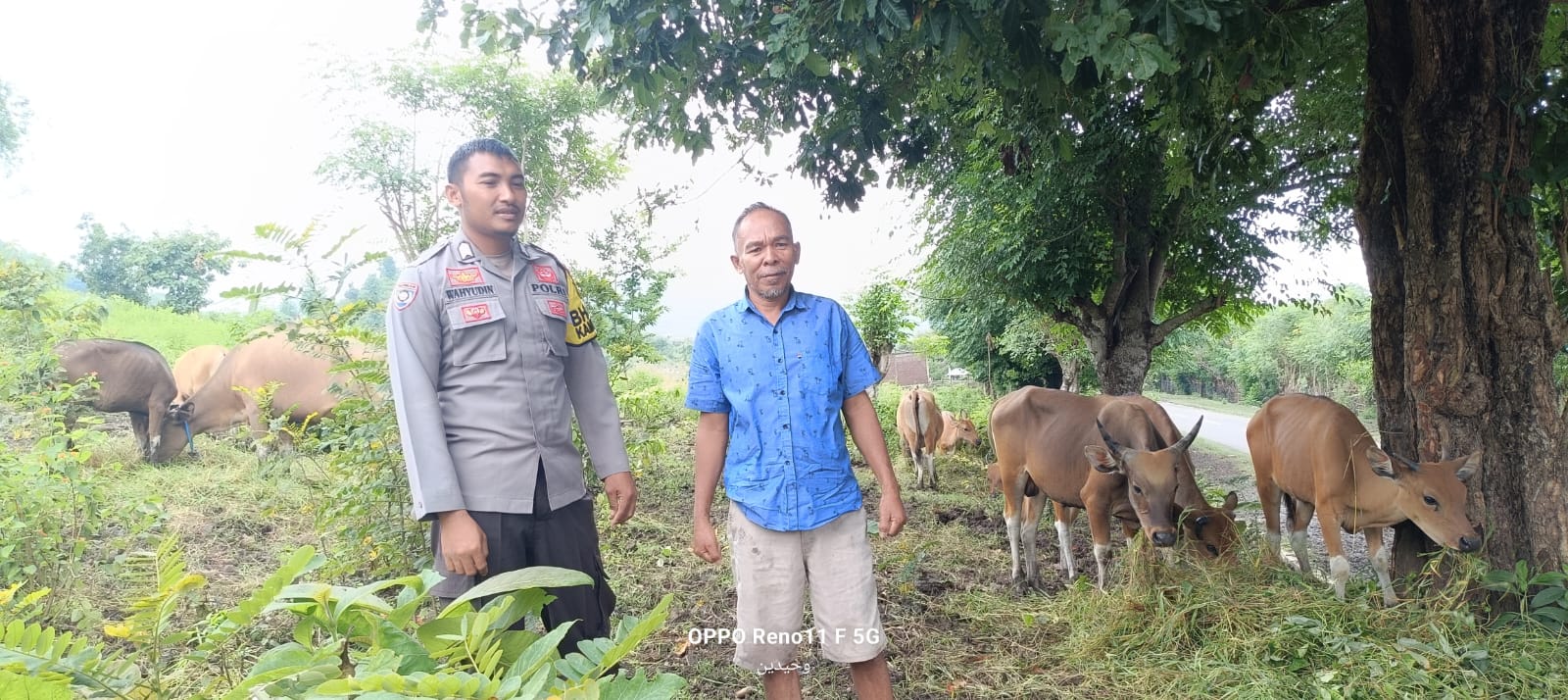 Dalam kegiatan tersebut, BRIGADIR WAHYUDIN turut membantu Sulaiman dalam merawat ternak sapinya serta memberikan motivasi agar masyarakat lebih aktif dalam beternak sebagai bagian dari penguatan ketahanan pangan.