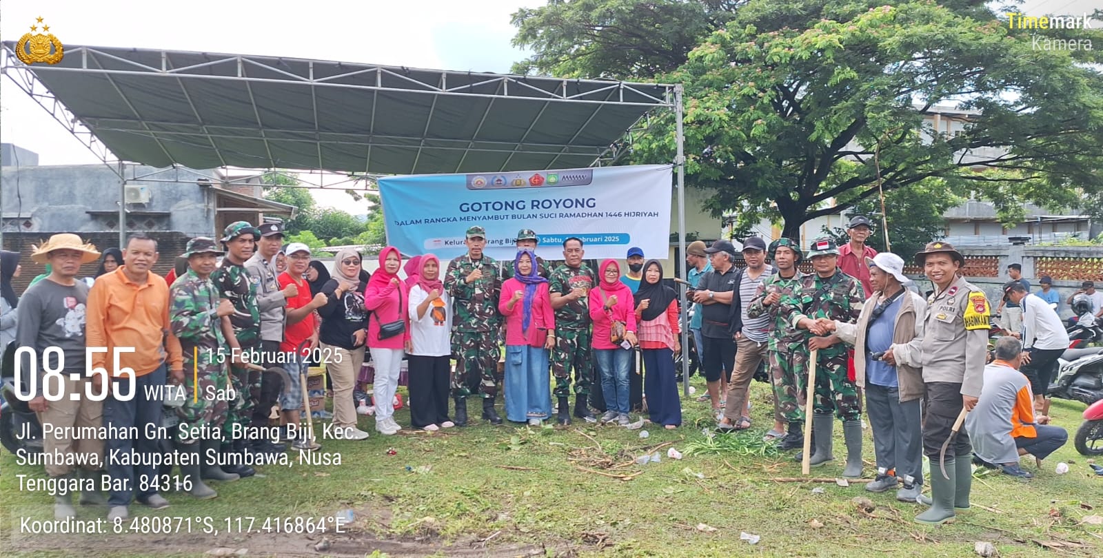 Sumbawa Besar–NTB, TNI-Polri, dan Pemerintah Kelurahan Brangbiji bersama masyarakat menggelar kegiatan gotong royong untuk membersihkan sampah di sekitar Tempat Pemakaman Umum (TPU) Gunung Setia, Sabtu pagi tanggal 15 Februari 2025.
