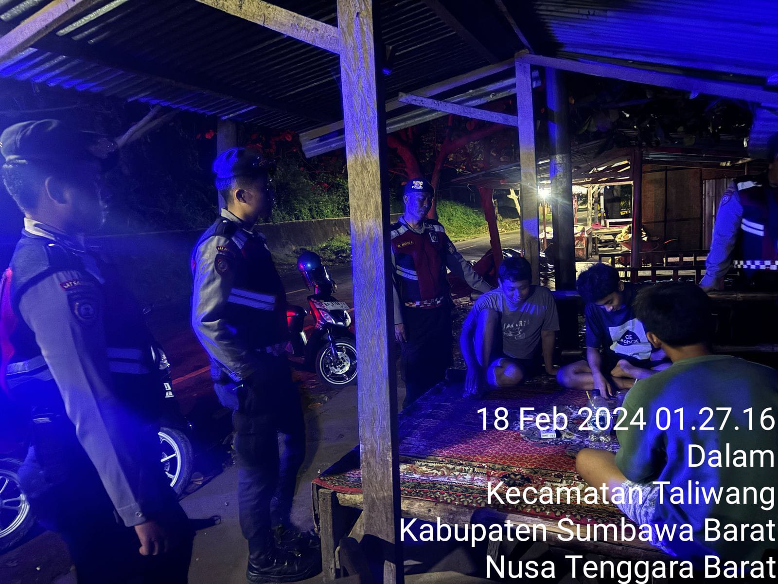 Sumbawa Barat NTB – Dalam upaya menjaga keamanan dan ketertiban masyarakat (Kamtibmas), Sat Samapta Polres Sumbawa Barat kembali melaksanakan patroli dialogis pada hari Selasa, 18 Februari 2025, pukul 01.00 WITA. Patroli kali ini berlangsung di Kelurahan Dalam, Kecamatan Taliwang, Kabupaten Sumbawa Barat.