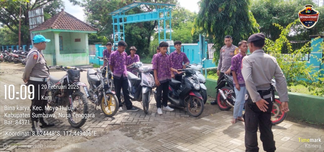 Sumbawa Besar-NTB, Polsek Moyo Hulu melaksanakan kegiatan razia kendaraan yang menyasar para siswa di SMA Negeri Moyo Hulu, khususnya bagi mereka yang menggunakan knalpot brong, Kamis (20/02/25) pagi.