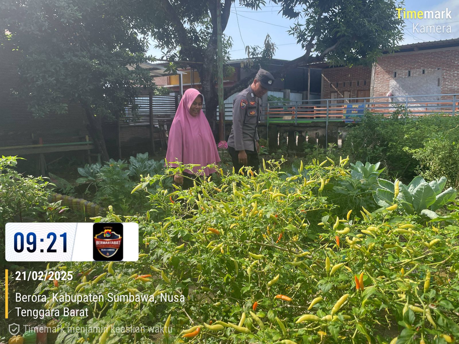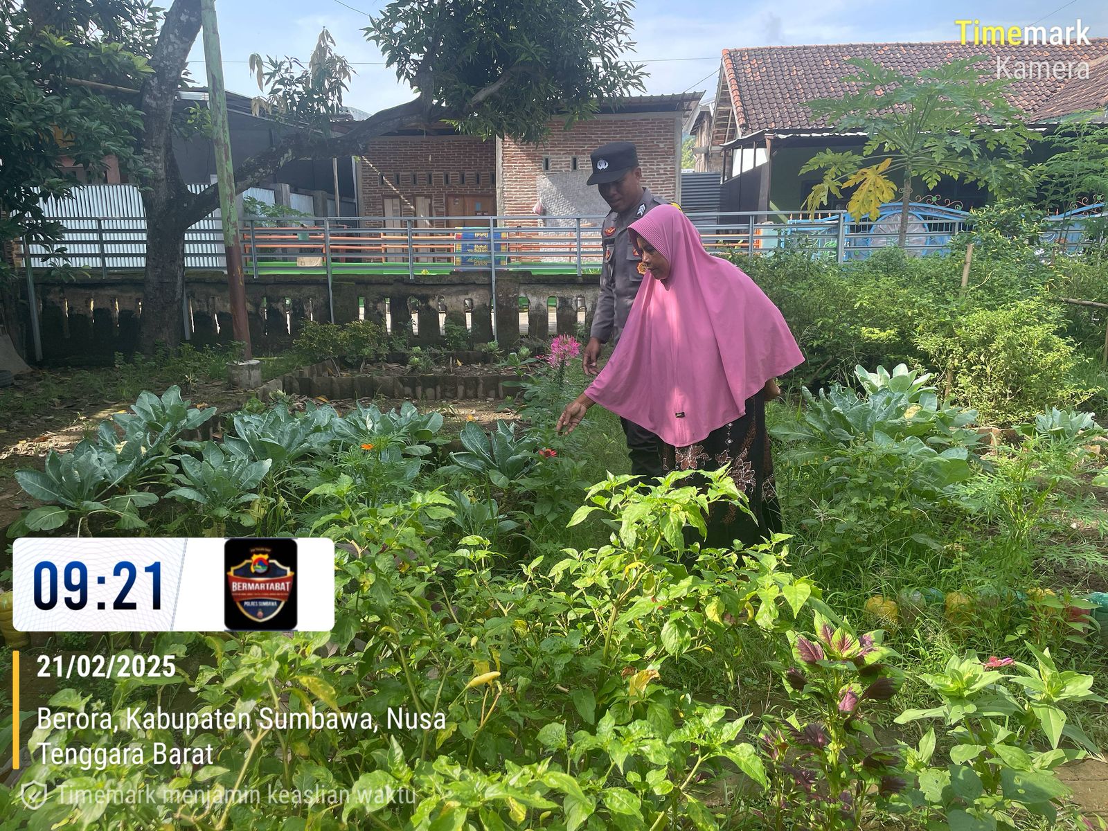 Sumbawa Besar–NTB, Bhabinkamtibmas Polsek Lape, Brigadir Ramadani, melaksanakan kegiatan sambang sekaligus pengecekan pekarangan pangan bergizi milik warga di RT.02/RW4 Desa Mama Kecamatan Lopok, Sumbawa, Jumat (21/02/25) pagi.