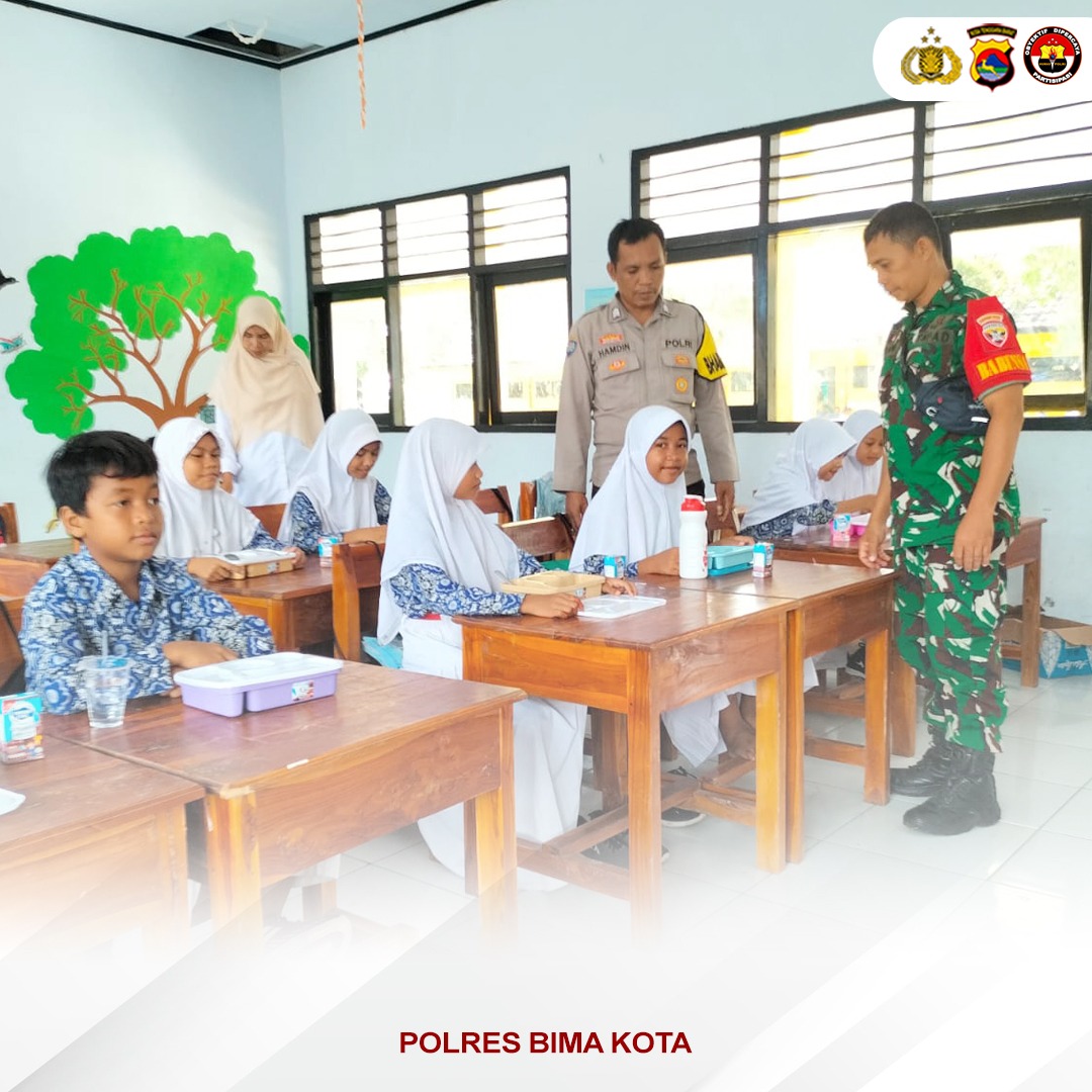 Kota Bima, NTB (23 FFebruari 2025) – Dalam rangka mendukung program pemerintah untuk menciptakan generasi penerus bangsa yang sehat dan cerdas, Bhabinkamtibmas Polsek Asakota bersama Babinsa turut mendampingi dan mengamankan kegiatan pemberian Makan Bergizi Gratis (MBG) oleh Satuan Pelayanan Pemenuhan Gizi (SPPG) Kota Bima bagi peserta didik di wilayah Kecamatan Asakota, Kota Bima, pada Sabtu, 22 Februari 2025.