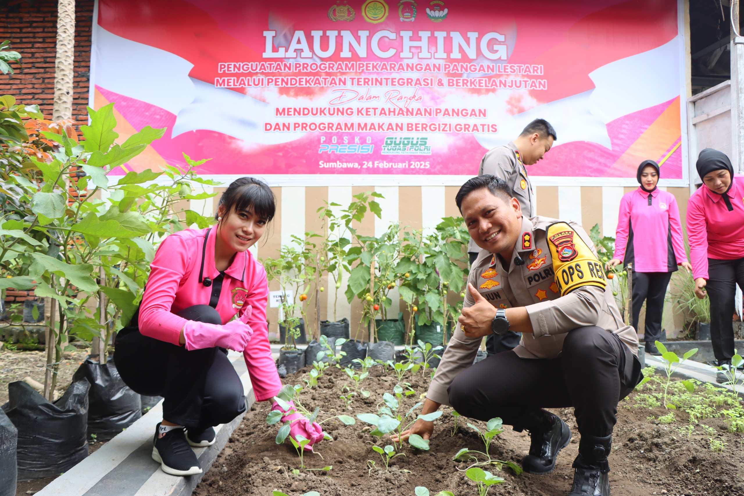 Sumbawa Besar-NTB, Kepolisian Resort (Polres) Sumbawa bersama Bhayangkari Cabang Sumbawa mengikuti launching Program Pekarangan Pangan Lestari (P2L) melalui pendekatan terintegrasi dan berkelanjutan yang diselenggarakan oleh Mabes Polri secara serentak, Senin (24/02/2025) pagi.