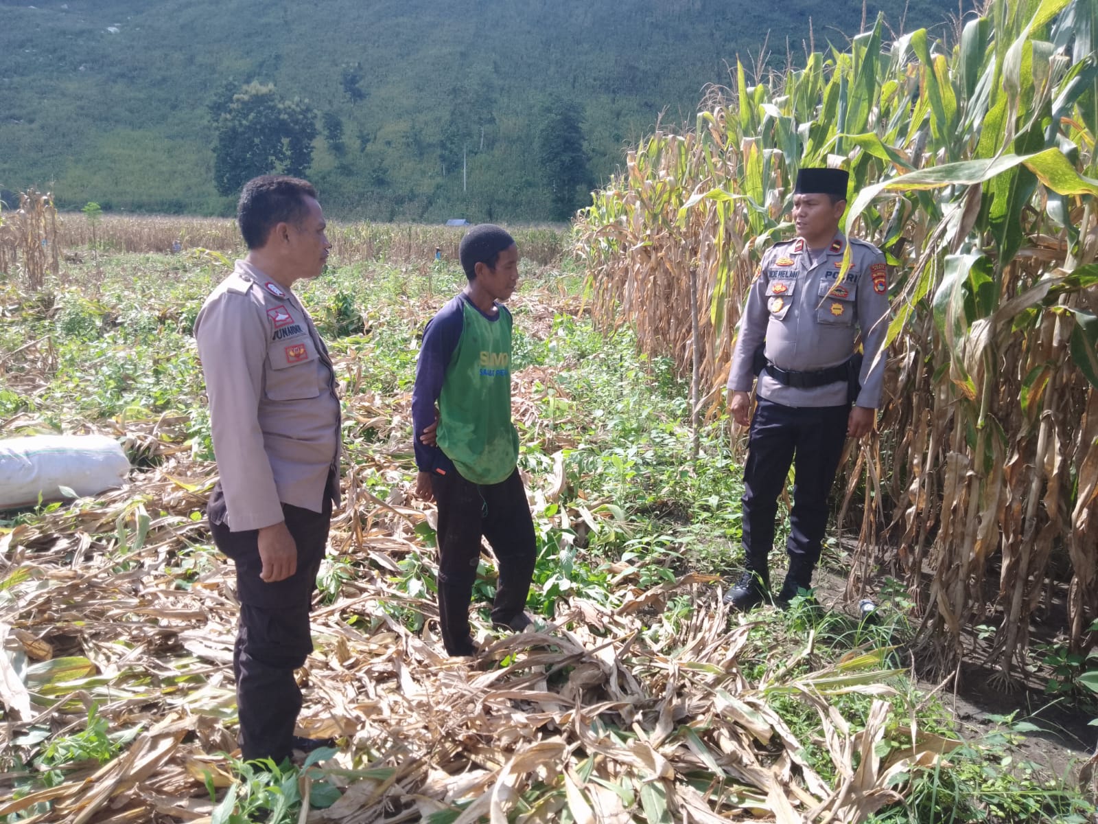Dalam rangka mendukung Program Ketahanan Pangan Nasional Menuju Indonesia Emas 2045, Kapolsek Dompu IPDA ADE HELMI, S.H., bersama BKTM Desa Manggeasi AIPDA M. ALI HANAFIAH, S.Sos., dan BKTM Desa Manggenae BRIPKA JUNAIDIN, melaksanakan pemantauan lahan jagung yang akan digunakan untuk panen raya pada Rabu, 26 Februari 2025.
