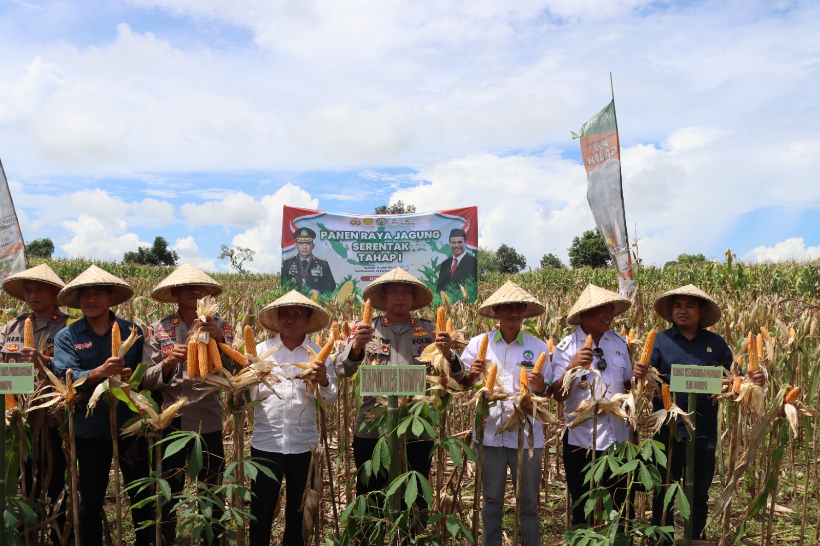Kapolres Dompu AKBP Zulkarnain, S.I.K. memimpin langsung Panen Raya Jagung Serentak di Dusun Makmur Damai, Desa Suka Damai, Kecamatan Manggelewa, Rabu (25/2/2025). Kegiatan ini merupakan bagian dari Program Ketahanan Pangan Nasional 2025, yang menjadi prioritas pemerintah dalam memperkuat sektor pertanian dan meningkatkan kesejahteraan petani.