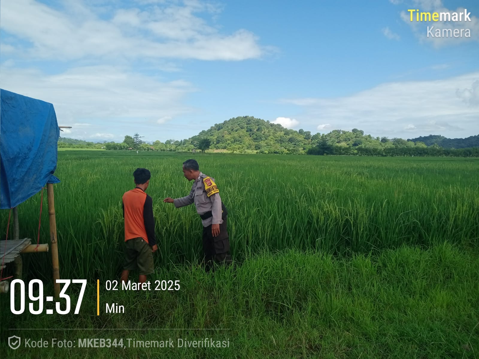 Sumbawa Besar-NTB , Dalam upaya mendukung program ketahanan pangan nasional, Bhabinkamtibmas Polsek Lape jajaran Polres Sumbawa terus aktif melaksanakan kegiatan sambang desa di wilayah binaannya. Seperti yang dilakukan oleh Bhabinkamtibmas Desa Tatede Bripka Sulkarnaen, yang menyambangi warganya di area persawahan seluas 1,5 hektar, Sabtu (tanggal bisa disesuaikan), Minggu (02/03/25) pagi.