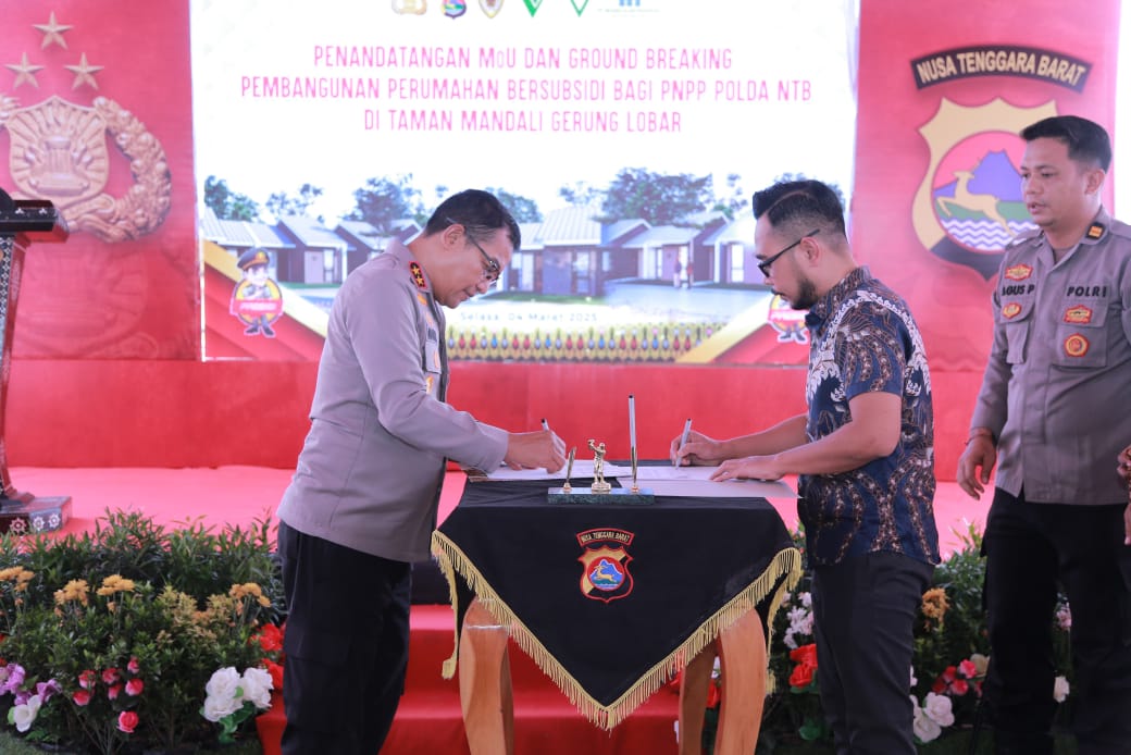 Lobar – Polda NTB resmi menjalin kerjasama dengan tiga pengembang properti, dalam rangka pengadaan perumahan bagi Pegawai Negeri di lingkungan Polda NTB. Penandatanganan surat perjanjian kerjasama ini dilakukan, Selasa (4/3/2025), dengan PT. Varindo Lombok Inti, PT. Salva Inti Property, dan PT. Muara Alam Indonesia di Perumahan Taman Mandali Gerung, Lombok Barat.