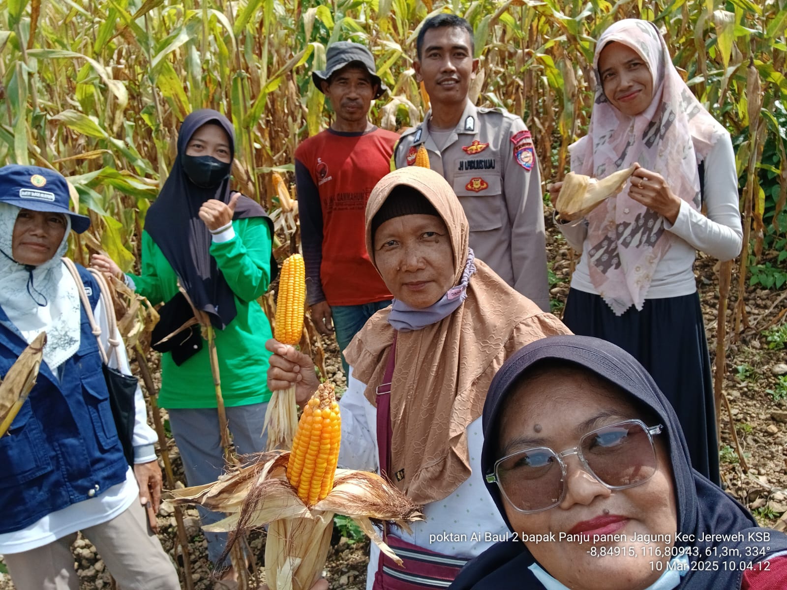 Sumbawa Barat, NTB – Dalam rangka mendukung ketahanan pangan di Desa Goa, Bhabinkamtibmas Desa Goa, Brigadir Lalu Zulkifli Hijrianto, bersama dengan Penyuluh Pertanian Lapangan (PPL) Desa Goa, melaksanakan kegiatan pendampingan panen jagung di RT. 06 Dusun Goa, Desa Goa, Kecamatan Jereweh, Kabupaten Sumbawa Barat. Kegiatan ini berlangsung pada pukul 10.00 WITA, Senin, 10 Maret 2025.