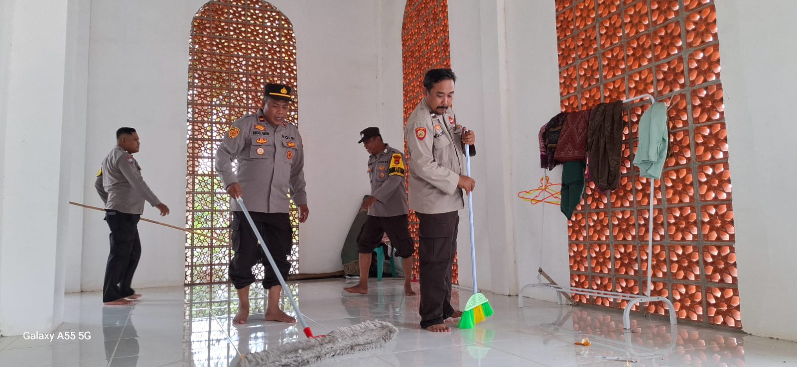 Kapolsek Poto Tano, Ipda Abdul Gafir, memimpin kegiatan Bakti Religi bergotong royong membersihkan Masjid Al-Khaerat yang berada di Desa Poto Tano Kecamatan Poto Tano Kabupaten Sumbawa Barat, pada hari Selasa (11/03/2025) pukul 09.00 WITA.