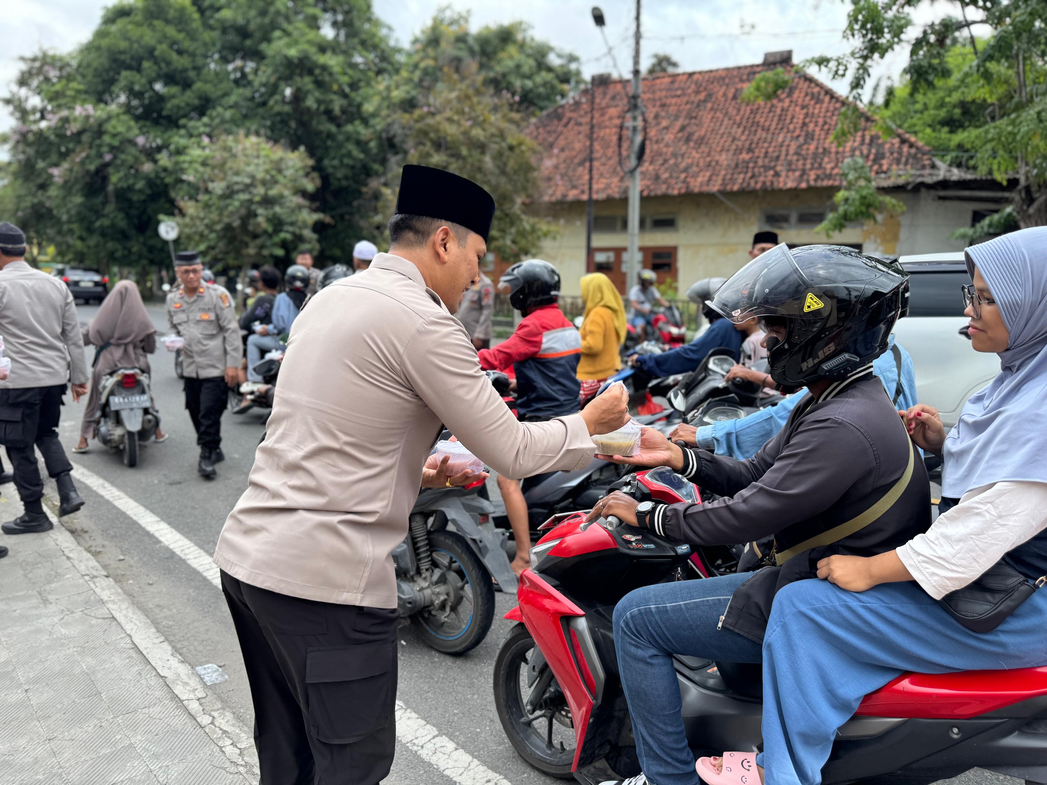 Kegiatan yang berlangsung di depan Mapolres Sumbawa ini melibatkan pembagian ratusan paket takjil kepada pengendara yang melintas, sebagai bentuk kepedulian Polres Sumbawa terhadap masyarakat di bulan Ramadhan.