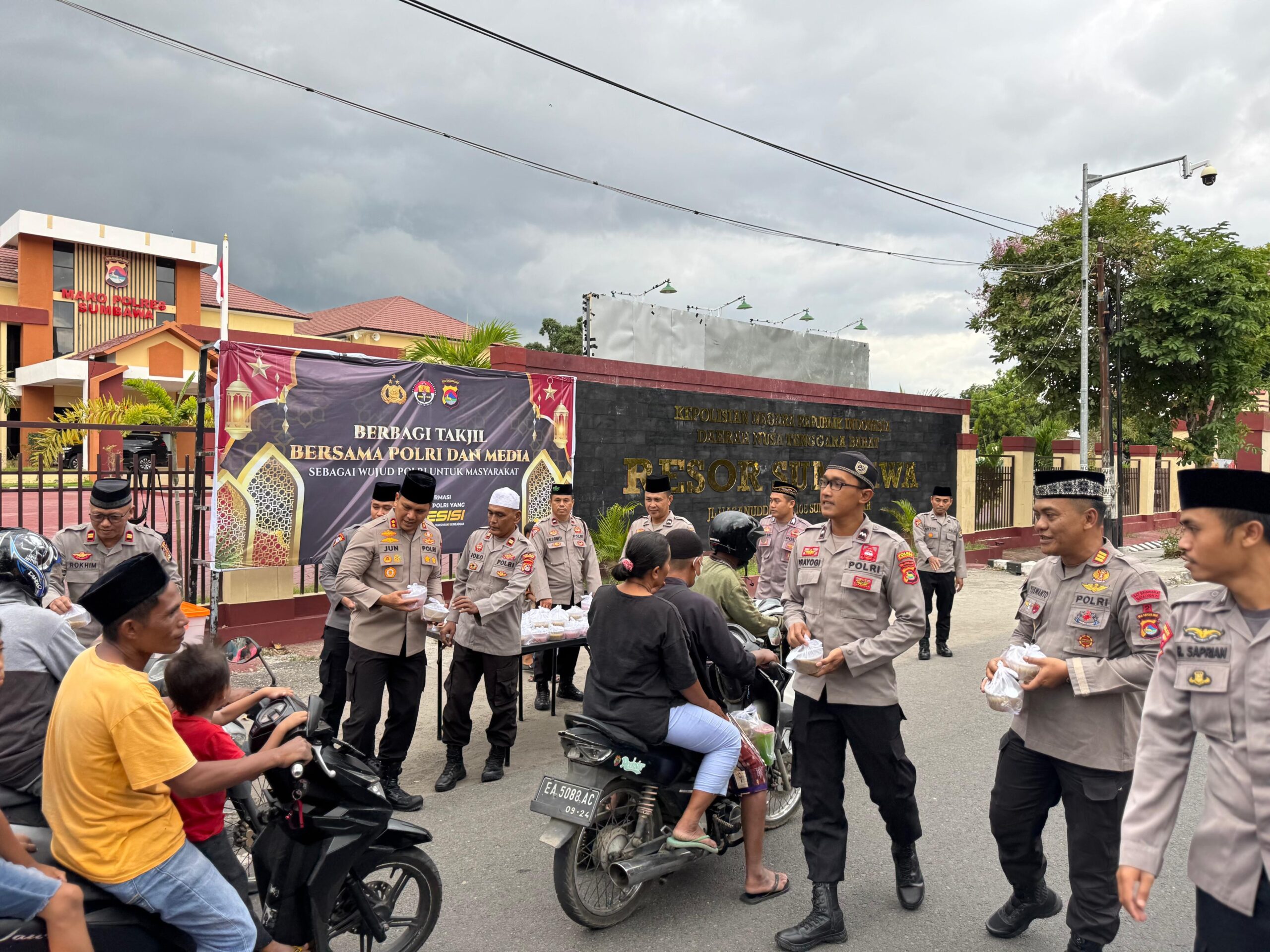 Kegiatan yang berlangsung di depan Mapolres Sumbawa ini melibatkan pembagian ratusan paket takjil kepada pengendara yang melintas, sebagai bentuk kepedulian Polres Sumbawa terhadap masyarakat di bulan Ramadhan.