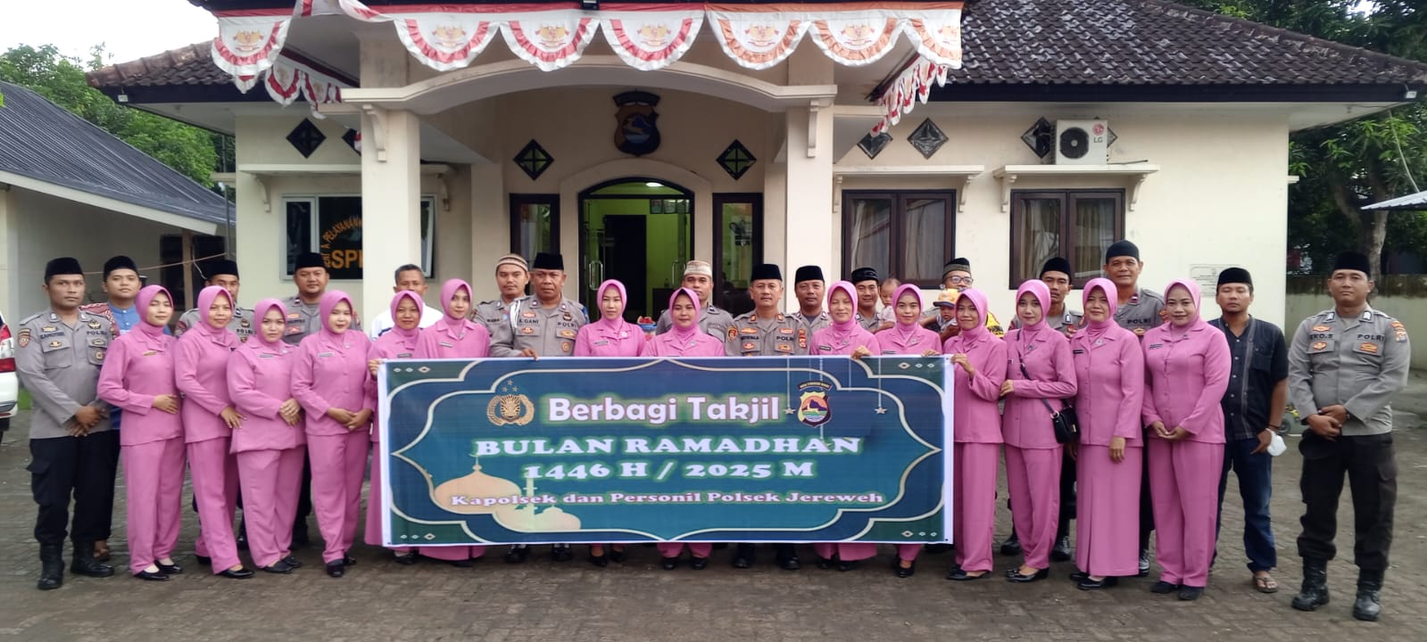 Kegiatan ini dipimpin langsung oleh Kapolsek Jereweh, Iptu Ardiyatmaja, yang didampingi oleh anggota Polsek Jereweh serta Bhayangkari Ranting Jereweh. Sasaran pembagian takjil adalah warga masyarakat sekitar dan pengendara R2 (sepeda motor) dan R4 (mobil) yang melintas di depan Mako Polsek Jereweh.