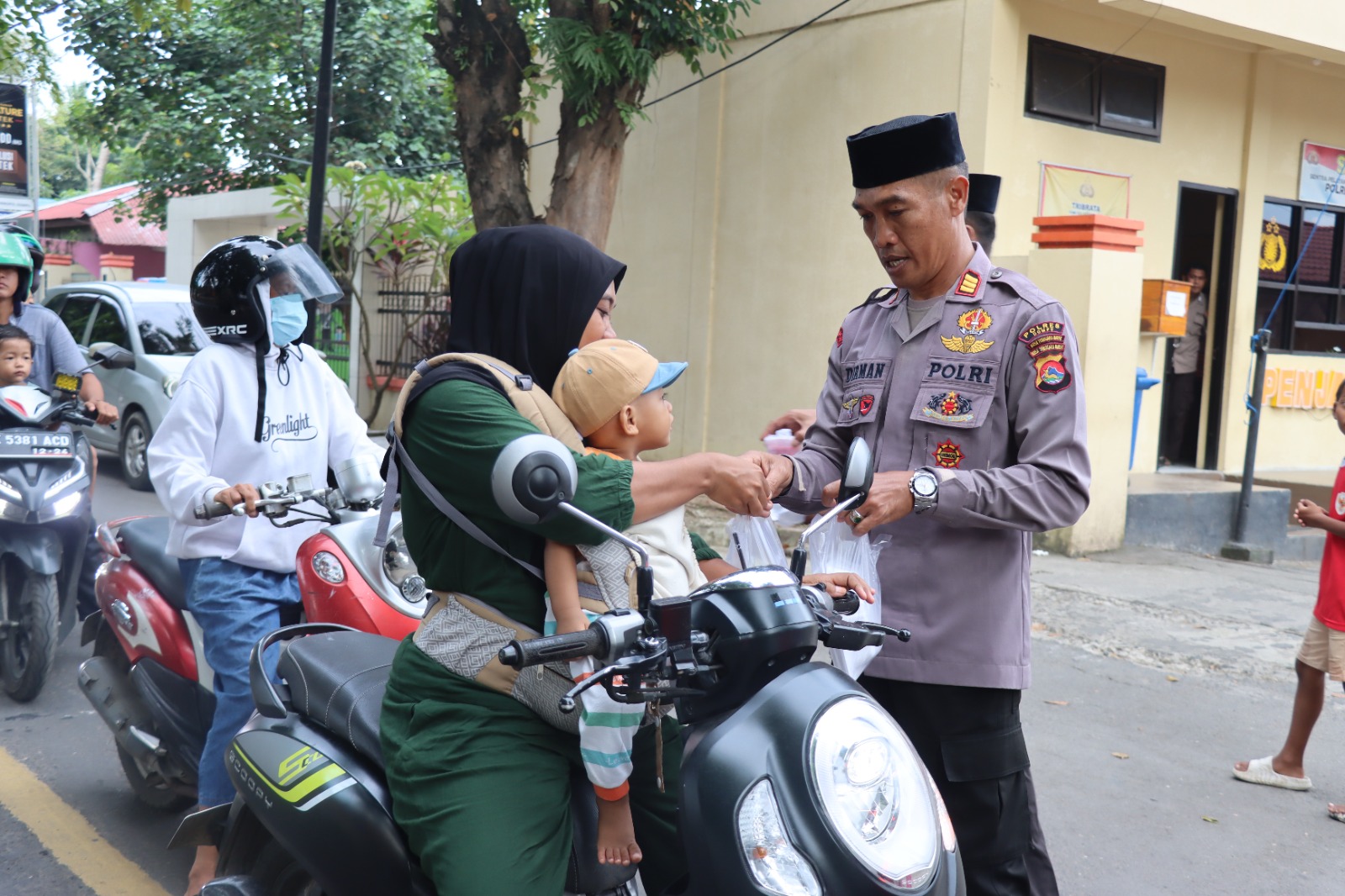Di bawah terik matahari yang mulai meredup menjelang waktu berbuka, deretan anggota kepolisian dan Bhayangkari dengan penuh senyum membagikan takjil kepada pengendara motor, mobil, hingga pejalan kaki. Dipimpin langsung oleh Kasubagdalops Bag Ops Polres Dompu, AKP Sudirman, S.H., M.M., kegiatan ini bukan sekadar membagikan makanan, tetapi juga menyampaikan pesan kasih sayang dan kepedulian di bulan yang penuh ampunan ini.