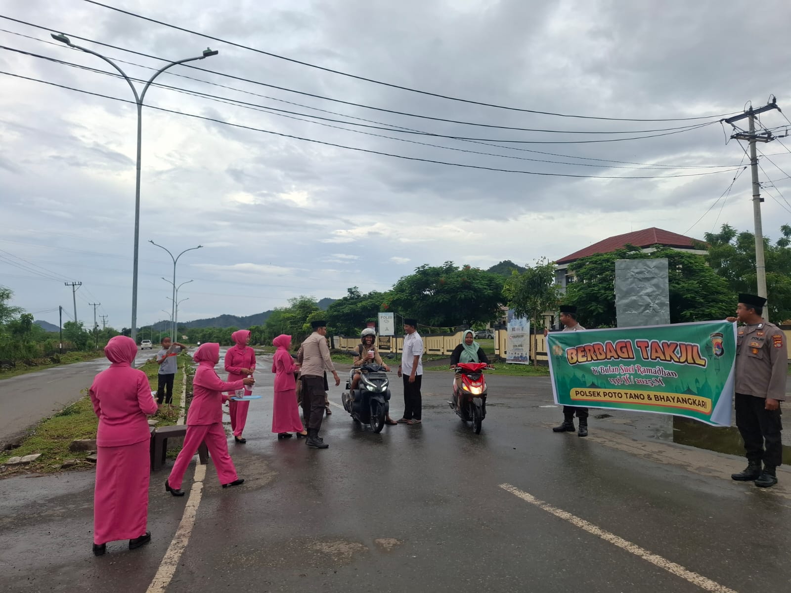Sumbawa Barat, NTB – Memasuki hari ke-17 puasa Ramadhan, kegiatan ibadah dan amal kebaikan terus dilakukan umat Islam. Dalam mengisi bulan Ramadhan yang penuh berkah ini, Kapolsek Poto Tano, Ipda Abdul Gafir, bersama anggota dan Bhayangkari Ranting Poto Tano menggelar bagi takjil kepada pengguna jalan, pada Senin, 17 Maret 2025 sekitar pukul 17.30 WITA, bertempat di jalan raya depan Mapolsek Poto Tano.