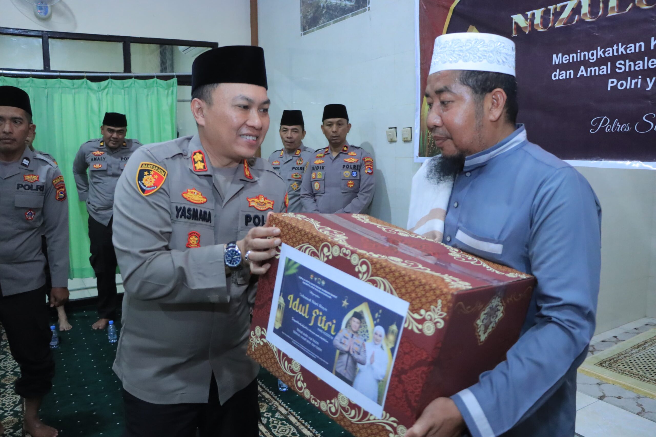 Di sela acara peringatan Nuzulul Qur’an, Kapolres Sumbawa Barat memberikan bingkisan kepada Ust. Erwin Junaedi dan Imam Masjid Ar-Rahmatullah serta perwakilan anggota Polres Sumbawa Barat.