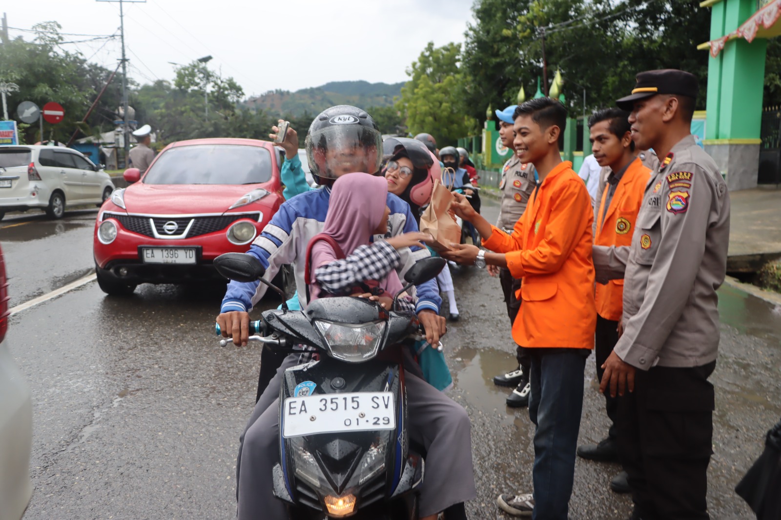 Kota Bima, NTB (20 Maret 2025) – Kapolres Bima Kota AKBP Didik Putra Kuncoro, S.I.K., M.Si., didampingi Ketua Bhayangkari Cabang Bima Kota Ny. Mira Didik, bersama Mahasiswa Universitas Mbojo Bima (UMBO Bima), Pejabat Utama (PJU), dan Personel Polres Bima Kota, melaksanakan kegiatan berbagi takjil kepada masyarakat dan pengguna jalan di depan Mako Polsek Rasanae Barat, Polres Bima Kota, Selasa (18/3/2025).