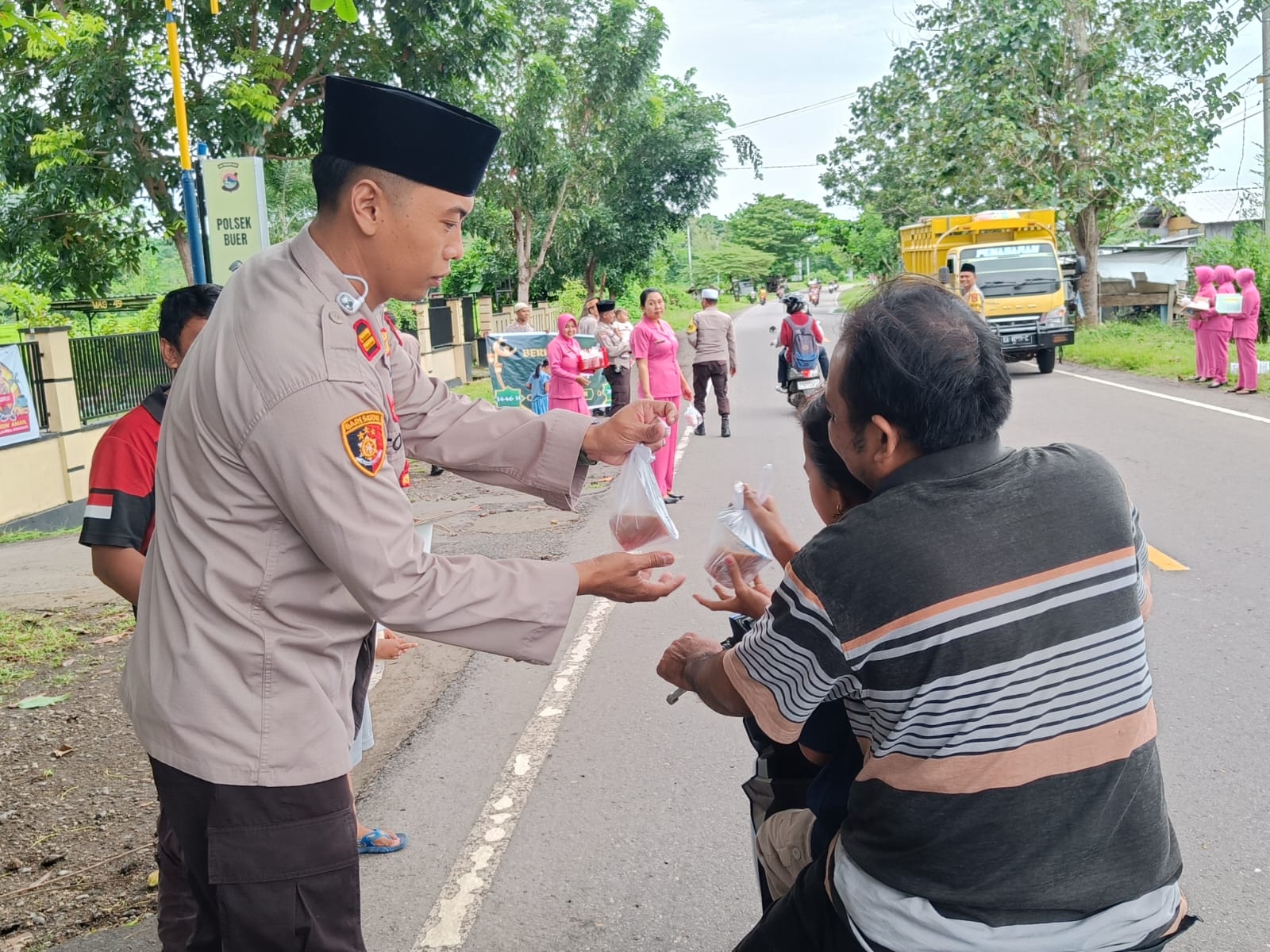 Sumbawa Besar-NTB, Polsek Buer dan Polsek Utan bersama dengan Bhayangkari menggelar kegiatan pembagian takjil kepada masyarakat yang tengah menjalankan ibadah puasa.
