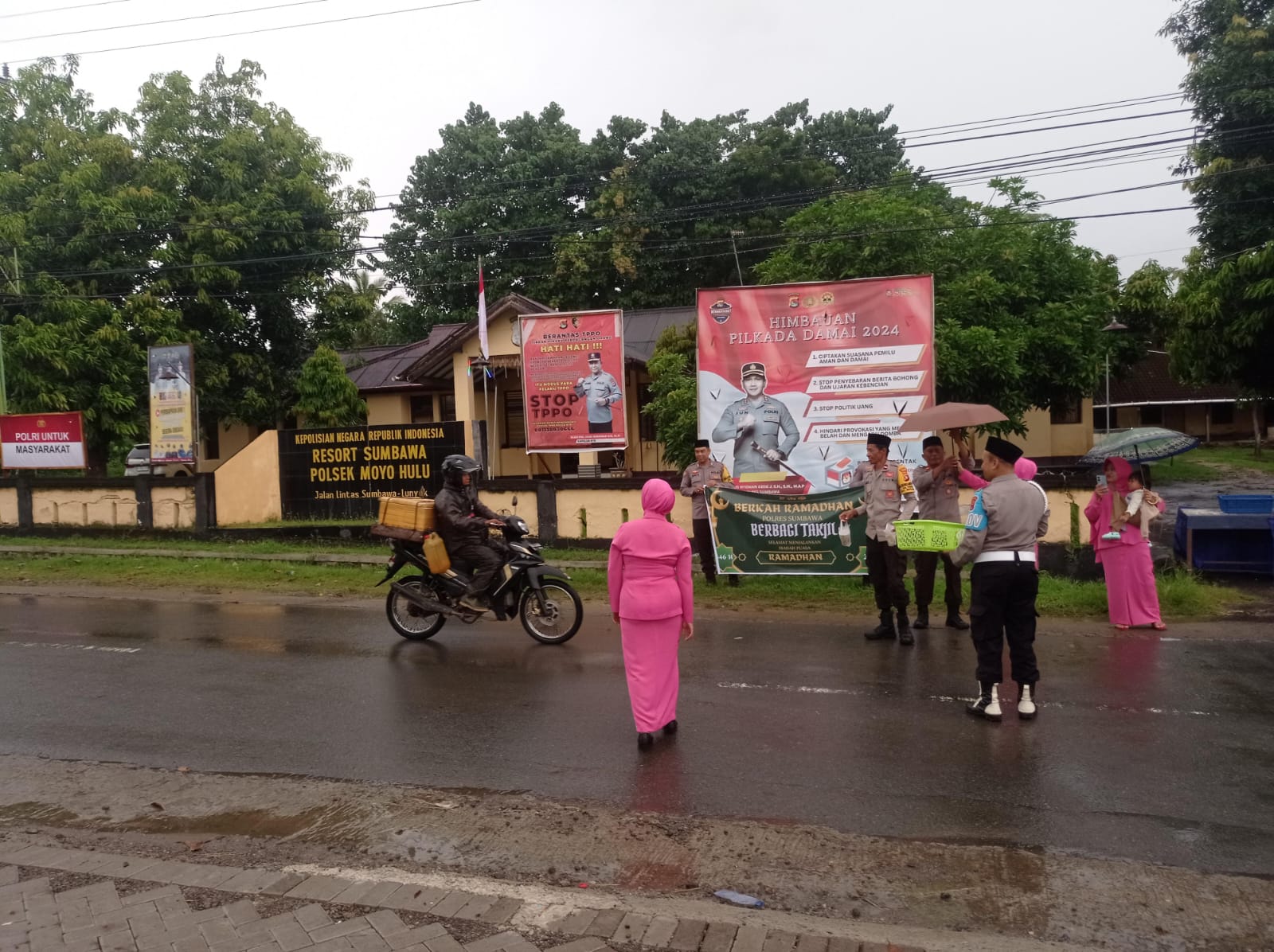 Sumbawa Besar-NTB, Dalam semangat berbagi dan kebersamaan menyambut bulan suci Ramadan 1446 H, Polsek Moyo Hulu dan Polsek Moyo Hilir menggelar kegiatan pembagian takjil kepada masyarakat yang melintas di jalan depan masing-masing Mapolsek, Sabtu (22/03/25).