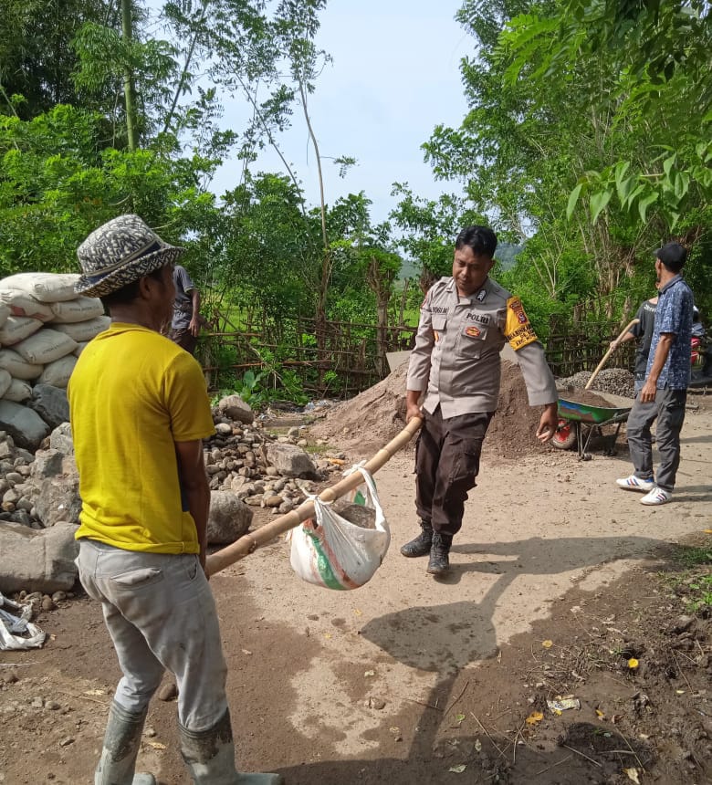 Sumbawa Besar–NTB, Bhabinkamtibmas Desa Sempe, BRIPKA A. Yogi M, bersama masyarakat setempat, melaksanakan kegiatan gotong royong untuk memperbaiki jembatan penghubung antara Dusun Sempe A dan Dusun Sempe B, Desa Sempe, pada Kamis, 27 Maret 2025, sekitar pukul 11.30 Wita.