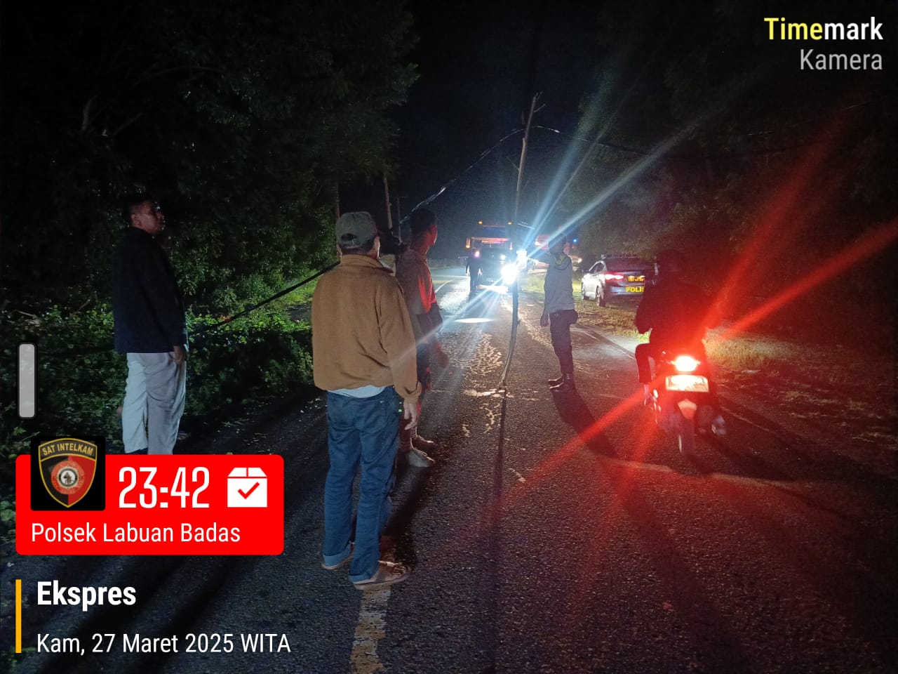 Kabel Listrik Melintang Di Jalan Akibat Pohon Tumbang, Polsek Labuhan Badas Amankan Arus Lalu Lintas Hingga Evakuasi