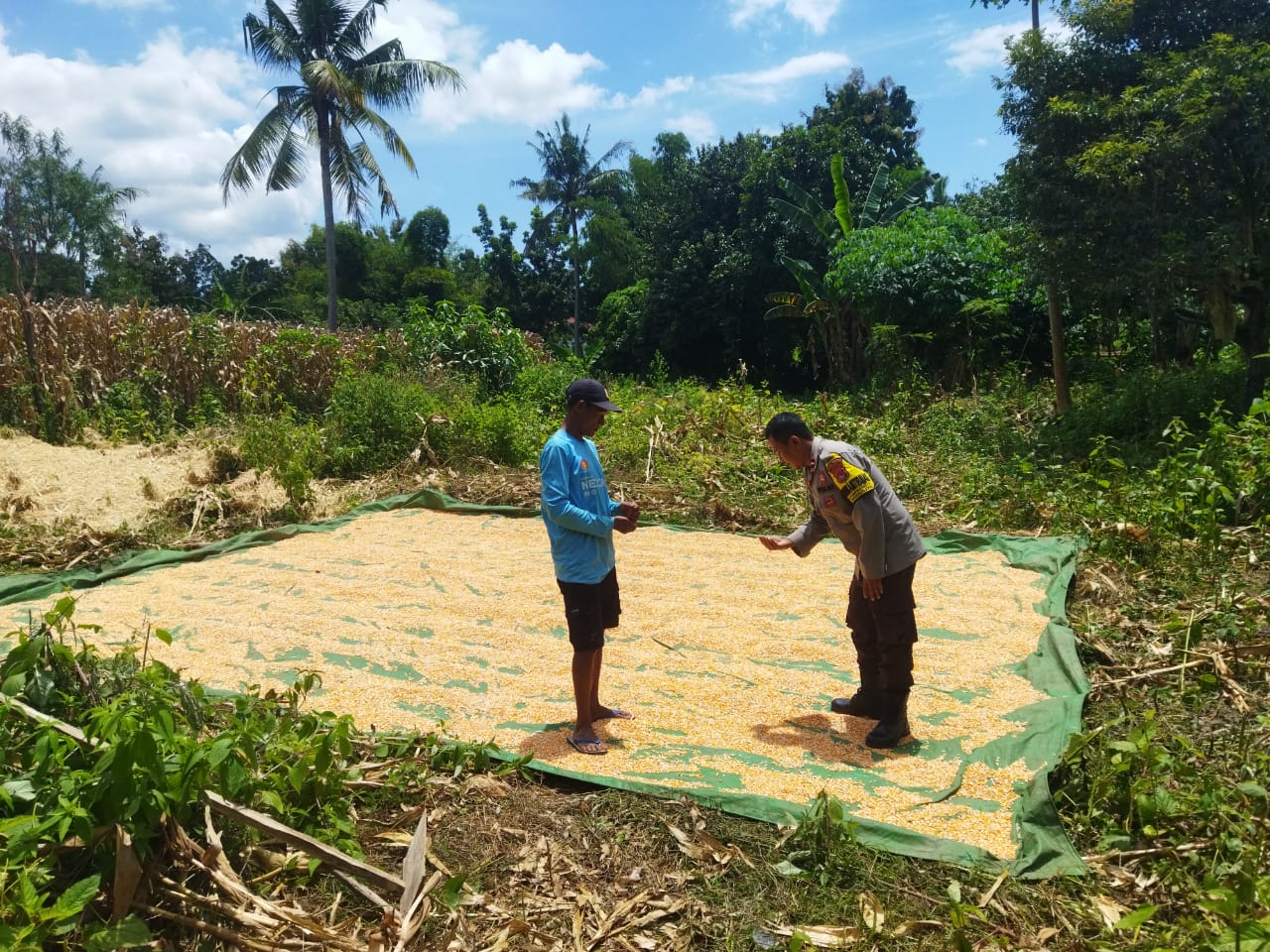 Di bawah matahari pagi yang hangat, Aipda Lalu Sapri Rahman, Bhabinkamtibmas Desa Kampasi Meci, menyusuri jalan menuju pekarangan milik Sarifudin di Dusun Suka Mulya. Di sana, Sarifudin sedang menjemur jagung—hasil panen dari kerja keras yang dijalani penuh kesabaran dan harapan.