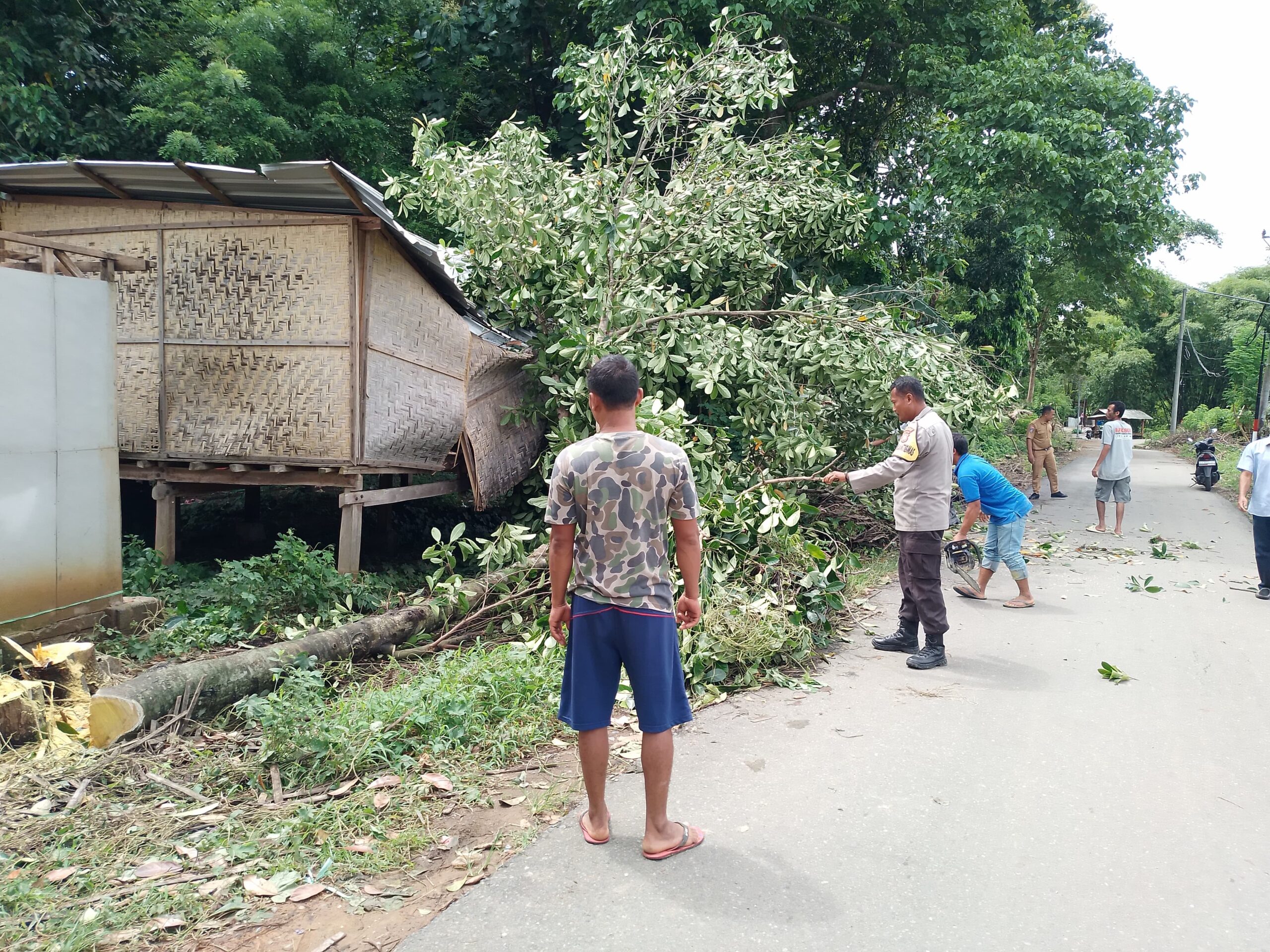 “Bhabinkamtibmas Desa Seloto bersama warga sekitar berkolaborasi untuk membersihkan ranting-ranting pohon yang melintang di jalan lintas Desa Seloto menuju arah Kota Taliwang,” terangnya.