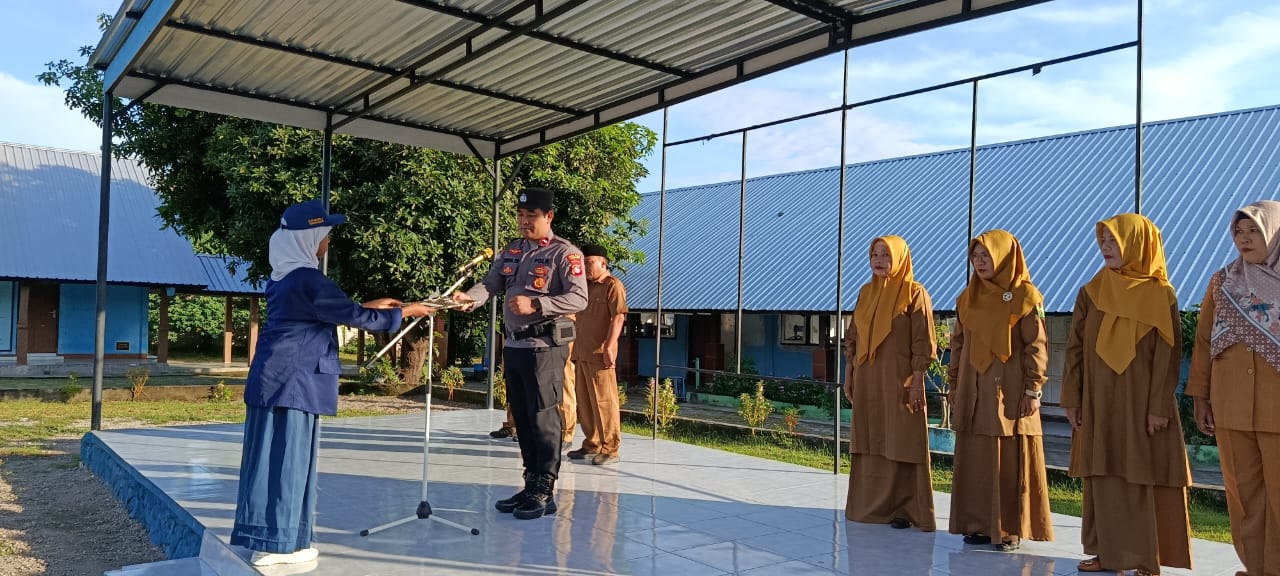 Sumbawa Besar-NTB, Suasana khidmat terasa di SMPN 2 Labuhan Badas pada Senin pagi saat personel Polsek Labuhan Badas bertindak sebagai pembina upacara bendera, Senin (14/04/25).