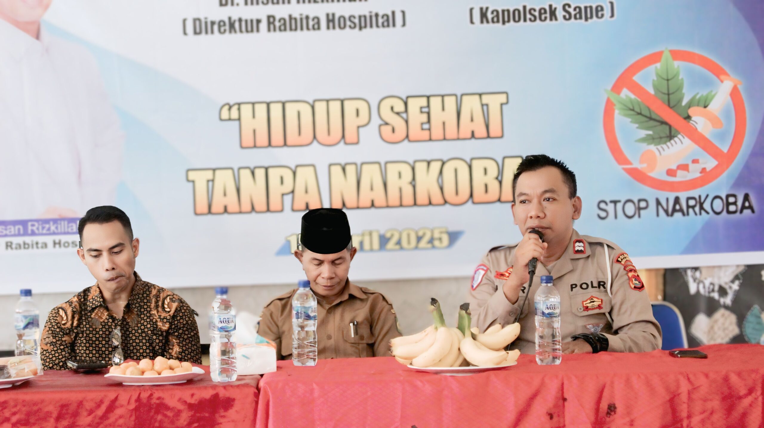 Penyuluhan menghadirkan dua pemateri utama, yakni dr. Ikhsan yang memaparkan dampak penyalahgunaan narkotika dari sisi kesehatan, dan Panit I Lantas Polsek Sape Aiptu Haryanto, S.Sos., yang memberikan materi dari aspek hukum.