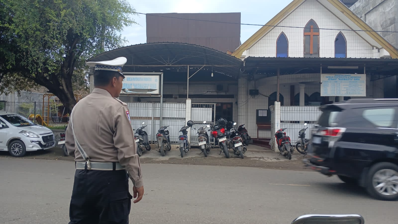 Dalam pengamanan ini, personel Sat Lantas tidak hanya mengamankan lokasi ibadah, tetapi juga melakukan pengaturan arus lalu lintas guna mengantisipasi kemacetan dan potensi kecelakaan lalu lintas di sekitar gereja.