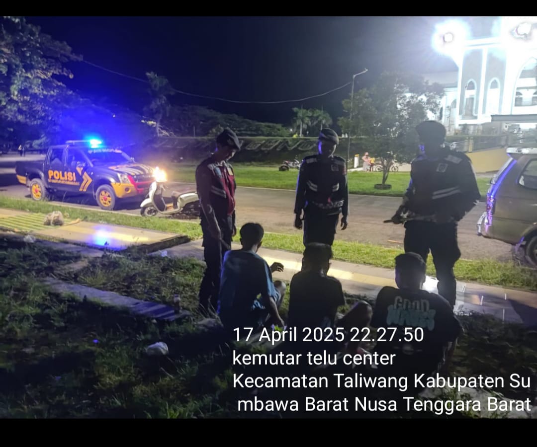 Sumbawa Barat, NTB – Dalam rangka menjaga keamanan dan ketertiban masyarakat, Unit Patroli Sat Samapta Polres Sumbawa Barat secara rutin melaksanakan patroli dialogis di wilayah hukumnya. Pada Kamis malam, 17 April 2025 pukul 22.00 WITA, patroli dilaksanakan di kawasan Lingkungan Kemutar Telu Center (KTC), Kecamatan Taliwang, Kabupaten Sumbawa Barat.