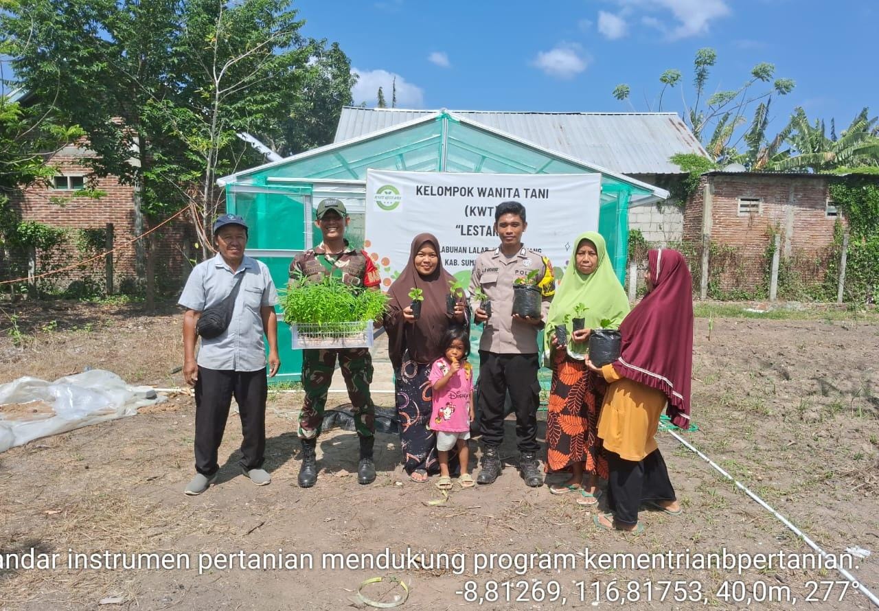 Bripka Agus turun ke lahan warga didampingi oleh Babinsa Desa Labuhan Lalar di lahan Kelompok Wanita Tani (KWT) Lestari di Dusun Wara’a Desa Labuhan Lalar yang dipersiapkan untuk ditanami tanaman bergizi yaitu kacang panjang, terong, cabe, tomat, dan tanaman bergizi lainnya.