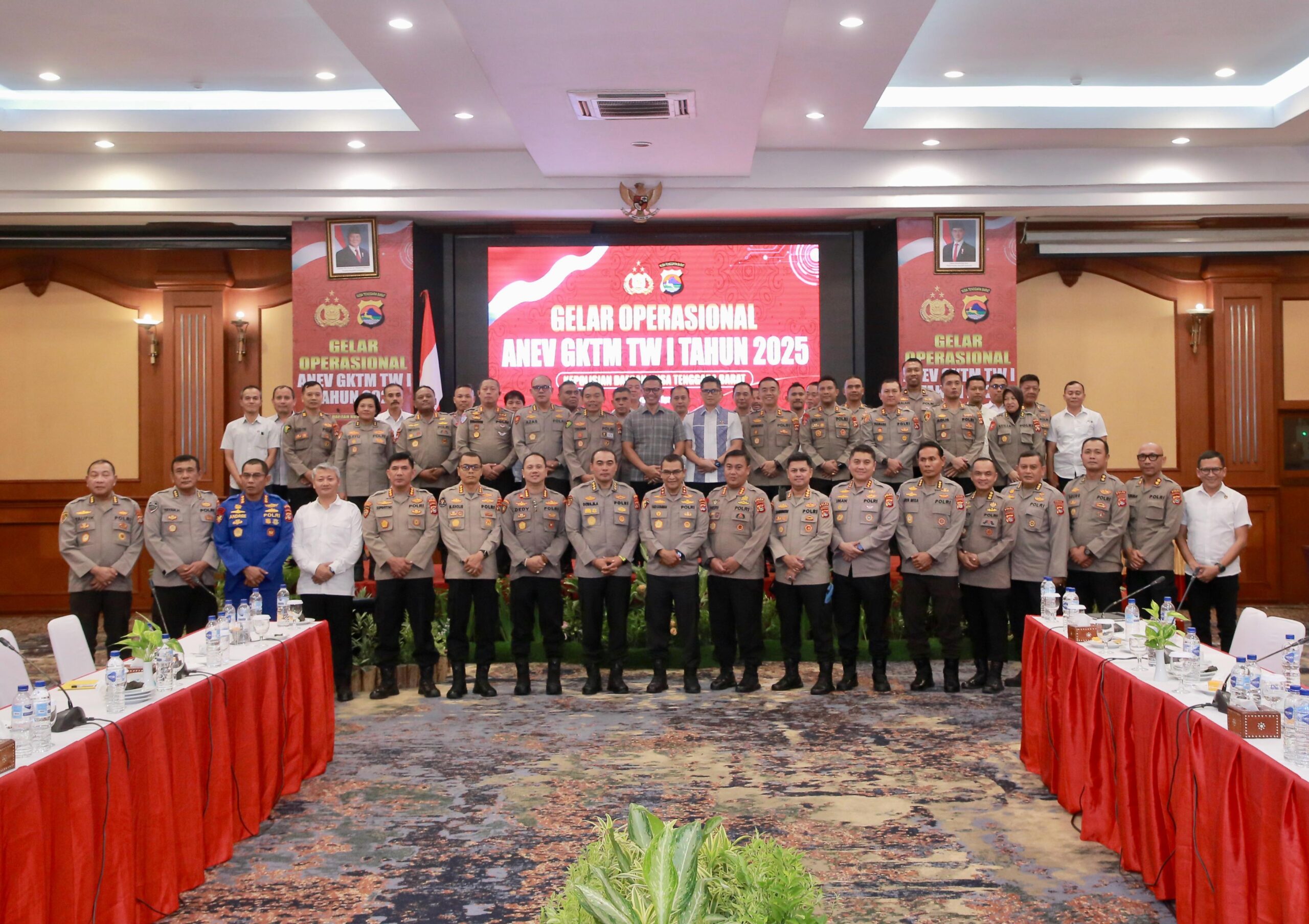 Mataram, NTB — Dalam rangka meningkatkan efektivitas kinerja dan kualitas pelayanan terhadap masyarakat, Kapolda Nusa Tenggara Barat Irjen Pol. Hadi Gunawan, SIK. secara resmi membuka Rapat Gelar Operasional (GO) dan Analisa Evaluasi (Anev) Gangguan Kamtibmas (GKTM) Triwulan I Tahun 2025, yang digelar di Hotel Lombok Raya, Mataram, Selasa (29/4/2025).
