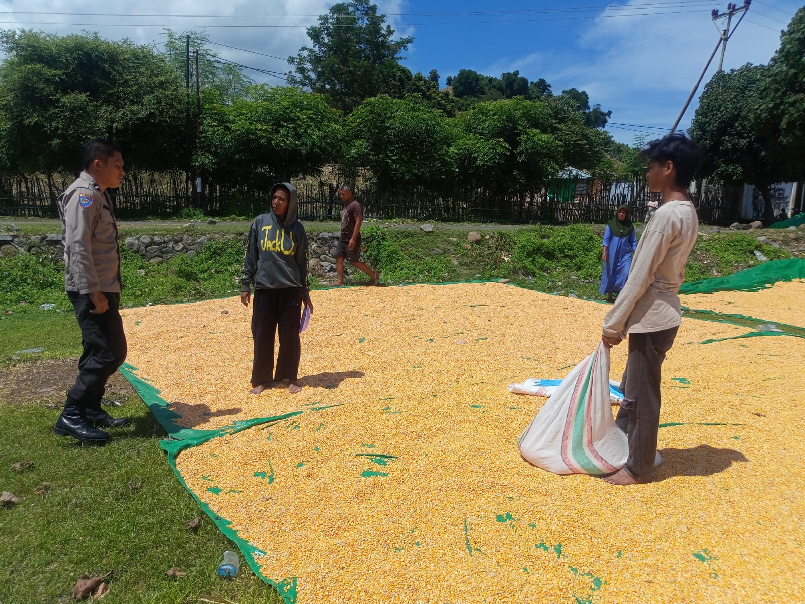 Dalam rangka mendukung program Ketahanan Pangan Nasional menuju Indonesia Emas 2045, Bhabinkamtibmas Desa Marada, AIPDA Julkifli, melakukan pemantauan langsung terhadap aktivitas penjemuran jagung milik warga binaan bernama Burhan di wilayah So Sori Rike, Desa Marada, Kecamatan Hu’u, Kabupaten Dompu, pada Senin (5/5/2025) pukul 10.00 WITA.
