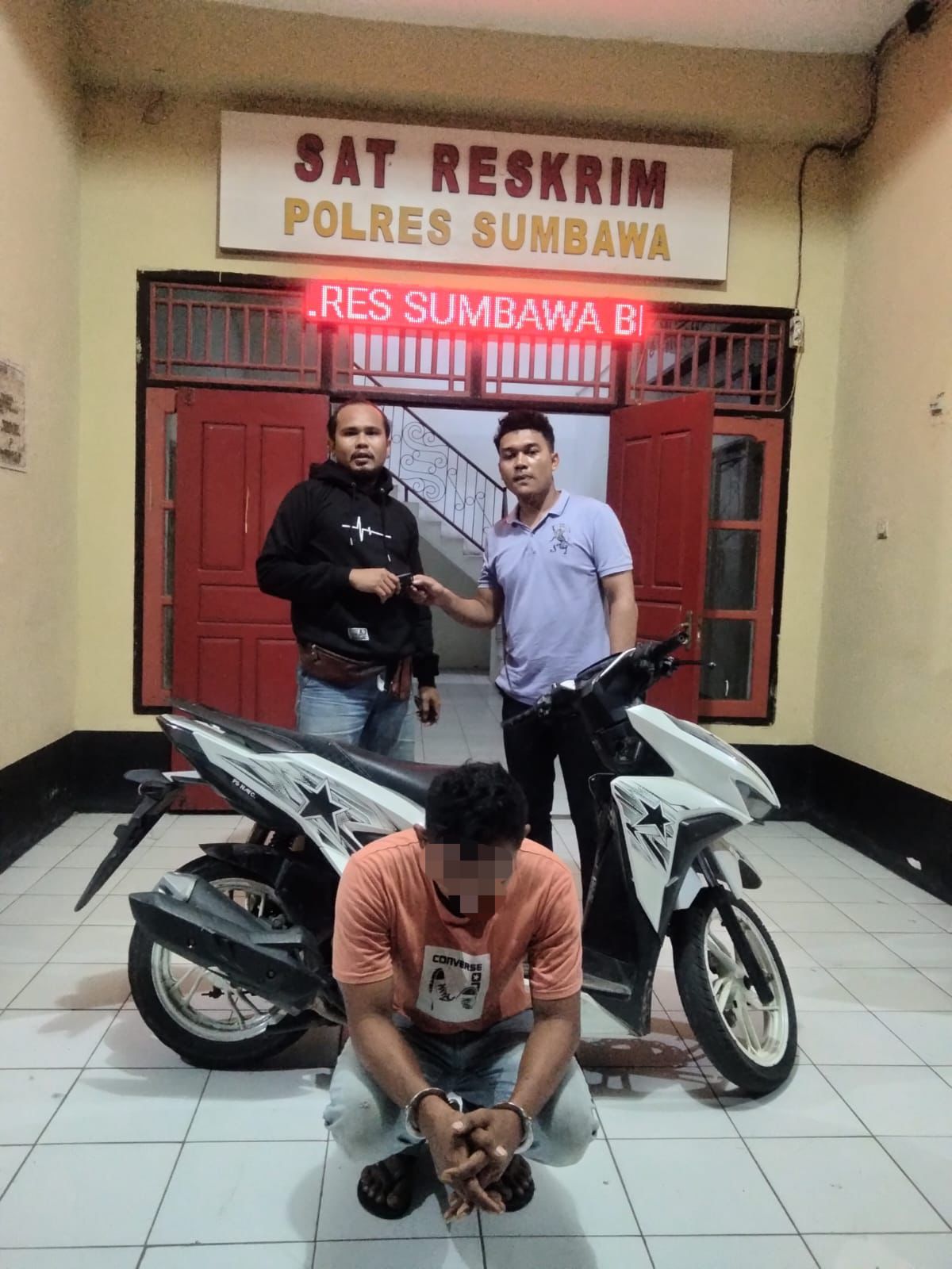 Setibanya dilokasi, petugas langsung melakukan penangkapan kepada terduga pelaku. Dalam interogasi singkat, terduga pelaku mengakui perbuatannya. Selanjutnya, tim bergerak ke arah Karang Cemes, Kelurahan Pekat, Kecamatan Sumbawa, untuk mengamankan barang bukti berupa 1 (satu) unit sepeda motor tersebut.