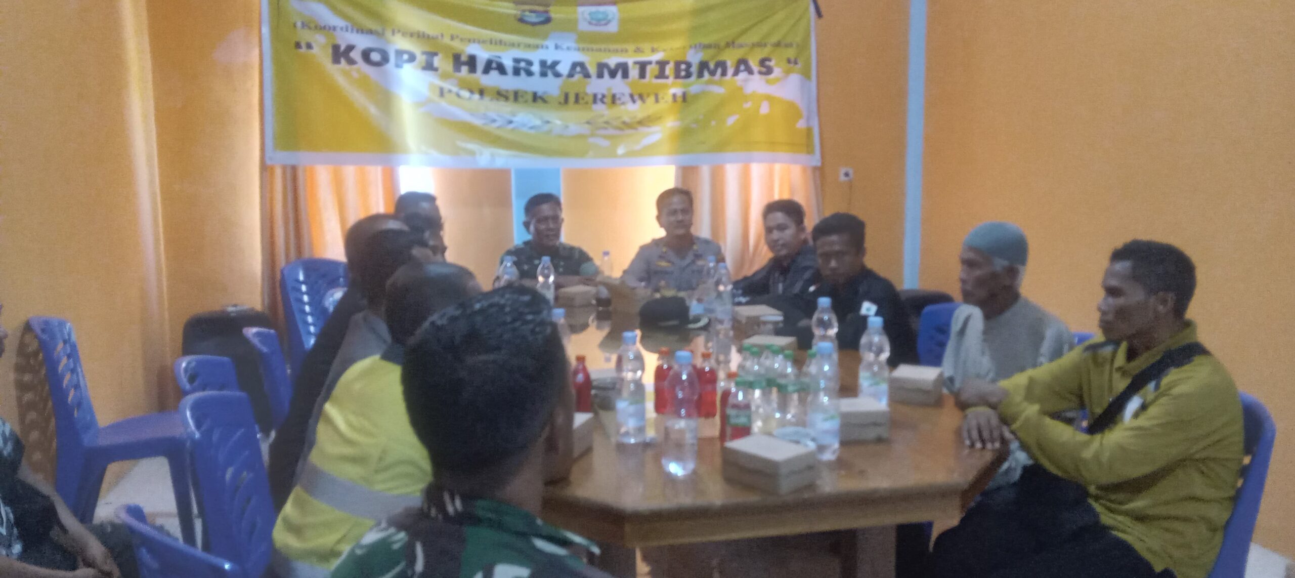 Sumbawa Barat, NTB – Acara Ngopi Harkamtibmas bersama masyarakat dan Forum Komunikasi Pimpinan Kecamatan (Forkopimcam) Jereweh serta PT. AMNT digelar di Aula Kantor Desa Belo, Kecamatan Jereweh, Kabupaten Sumbawa Barat, pada Jumat (16/05/2025).