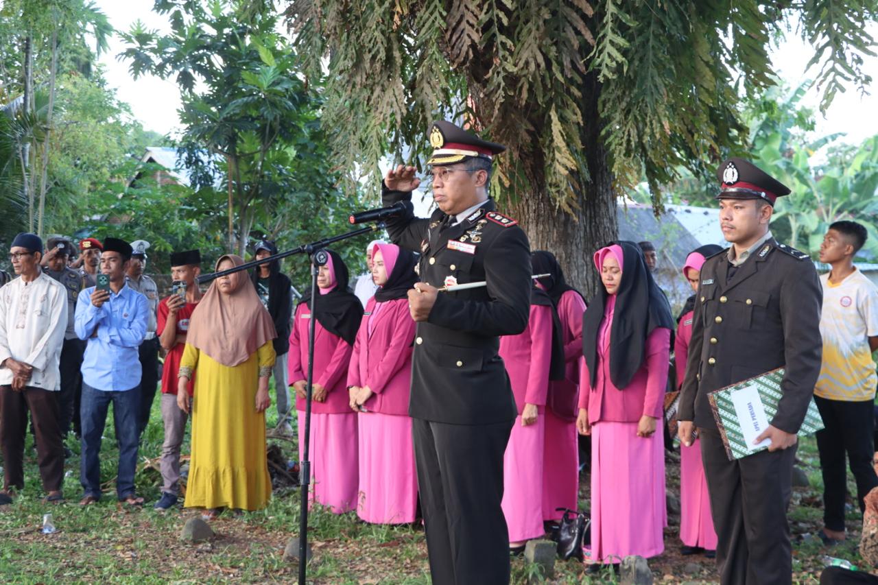 Kepala Kepolisian Resor (Kapolres) Bima AKBP Eko Sutomo S.I.K., M.I.K menjadi Inspektur Upacara (Irup) pemakaman anggotanya Almarhum Ajun Komisaris Polisi AKP Mas,ud yang meninggal dunia karena sakit, Sabtu (17/5/2025) sore.