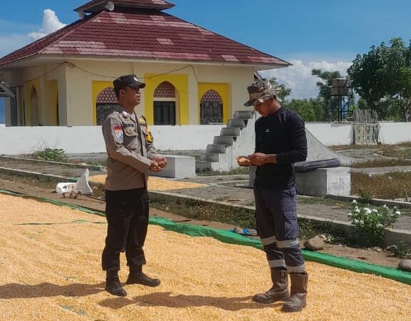 Dalam rangka mendukung pelaksanaan Program Ketahanan Pangan Nasional menuju Indonesia Emas 2045, Bhabinkamtibmas Desa Daha Polsek Hu’u, Bripka Adi Setiadi, melakukan pemantauan terhadap aktivitas warga binaan yang tengah menjemur hasil panen jagung, Minggu (27/5/2025) pukul 10.50 Wita di Dusun Daha Nae, Desa Daha, Kecamatan Hu’u, Kabupaten Dompu.