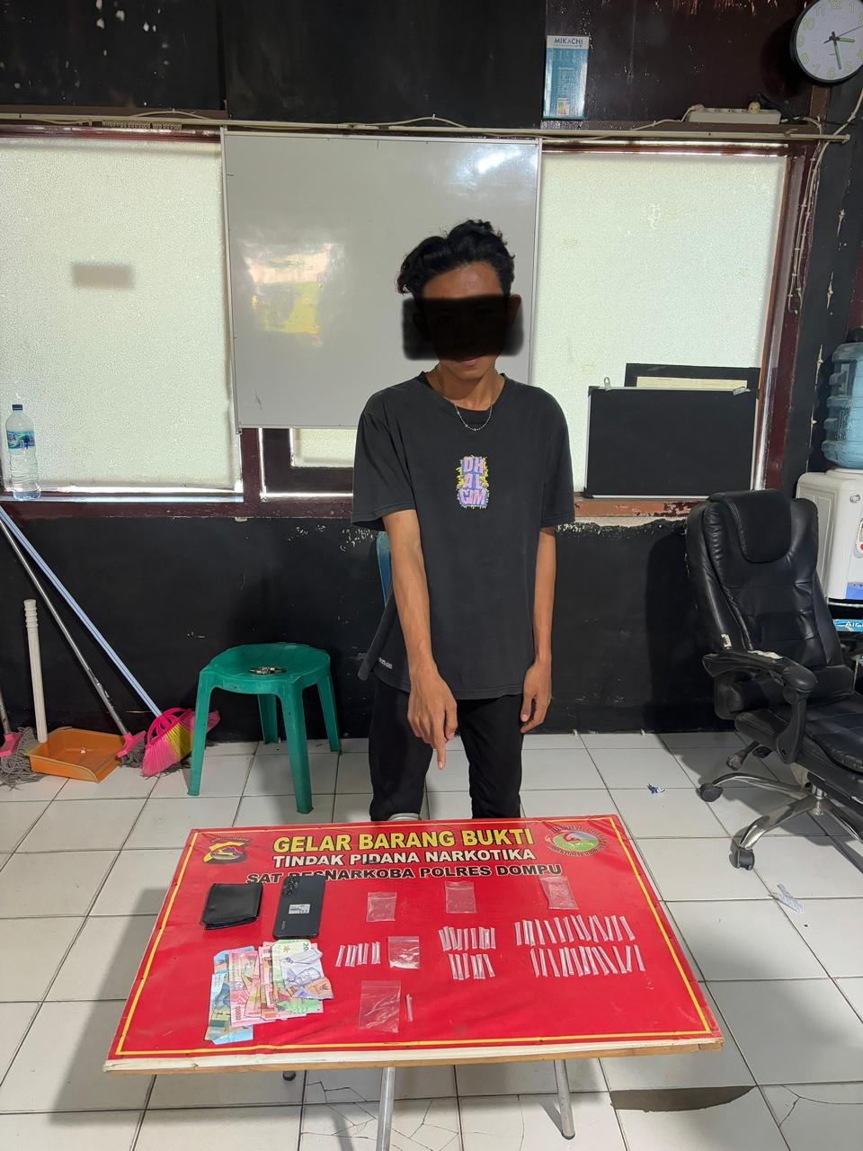 Polres Dompu melalui Satuan Reserse Narkoba berhasil mengungkap kasus dugaan tindak pidana peredaran narkotika golongan I jenis sabu di wilayah hukum Polres Dompu. Penangkapan dilakukan terhadap seorang pria berinisial A (22), warga Kelurahan Karijawa, Kecamatan Dompu, pada Selasa, 3 Juni 2025 sekitar pukul 14.30 WITA.