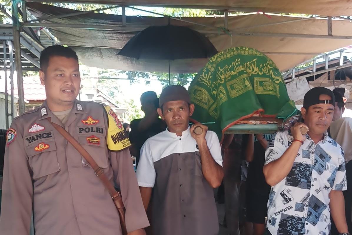 Bhabinkamtibmas Desa Panda Bripka Dimyati bersama warga lainnya dalam sambang duka itu menyampaikan rasa duka Cita yang mendalam.