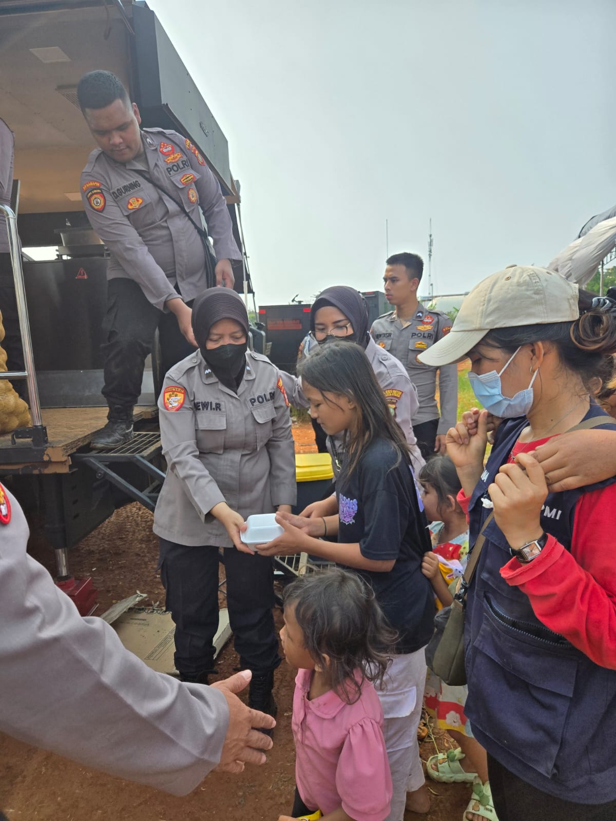 Jakarta. Direktorat Binmas Polda Metro Jaya turun ke lokasi pengungsian korban kebakaran di Kapuk Muara, Penjaringan, Jakarta Utara. Polda Metro turun memberikan trauma healing kepada para korban kebakaran, terutama anak-anak.