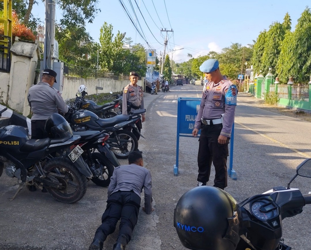 Kota Bima, NTB (17 Juni 2025) – Dalam upaya meningkatkan kedisiplinan dan kesiapan personel, Kanit Propam Polsek Wawo Polres Bima Kota melaksanakan kegiatan Penegakan, Ketertiban, dan Disiplin (Gaktibplin) terhadap seluruh anggota Polsek Wawo. Kegiatan ini dilaksanakan sebelum pelaksanaan apel pagi di Mako Polsek Wawo, pada Senin (16/6/2025).