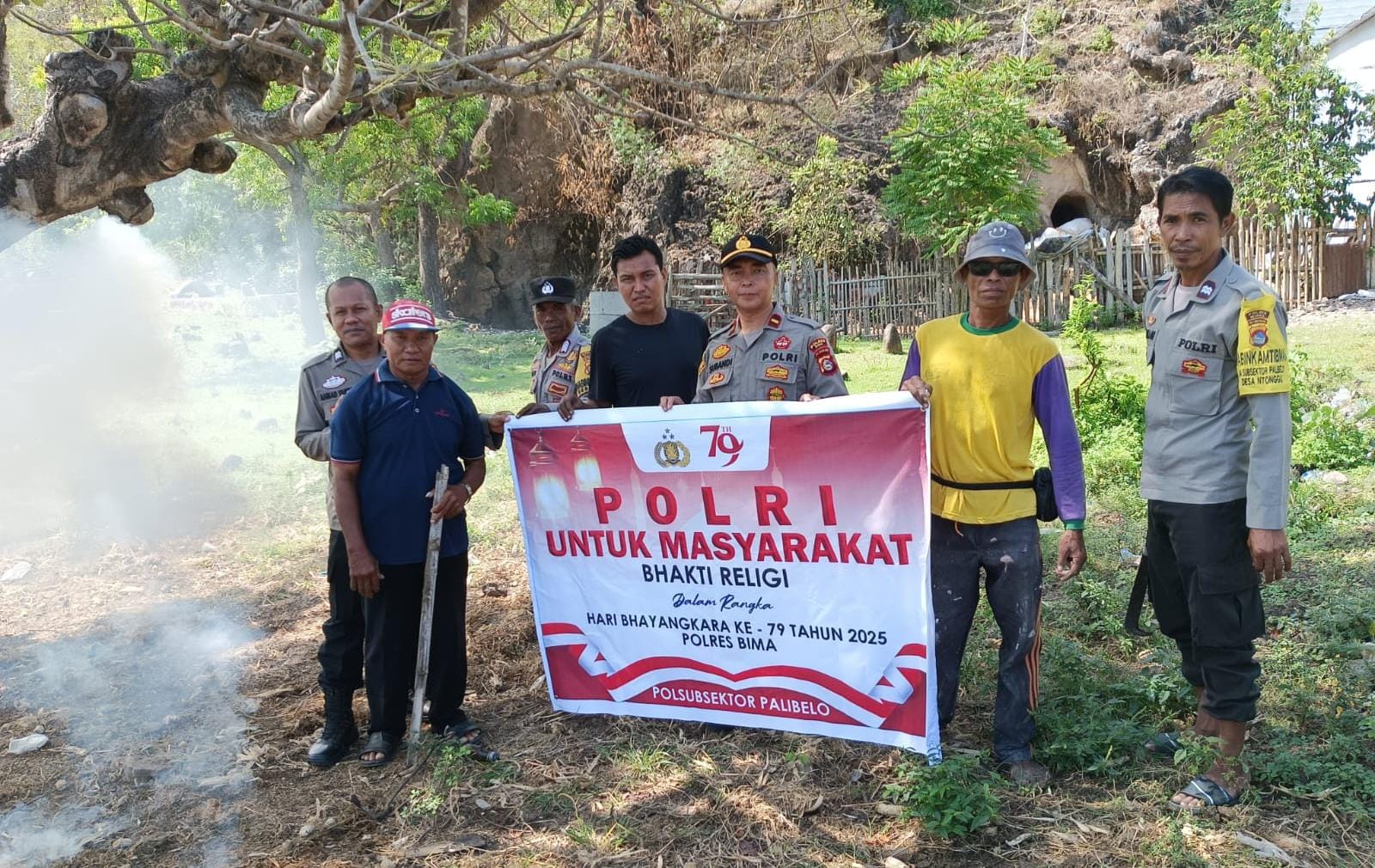 Gotong royong membersihkan TPU yang berlokasi di Rt 01 Rw 01 Desa Belo Kecamatan Palibelo itu merupakan salah satu rangkaian kegiatan Polres Bima dan jajaran dalam rangka menyambut HUT Bhayangkara Ke-79.