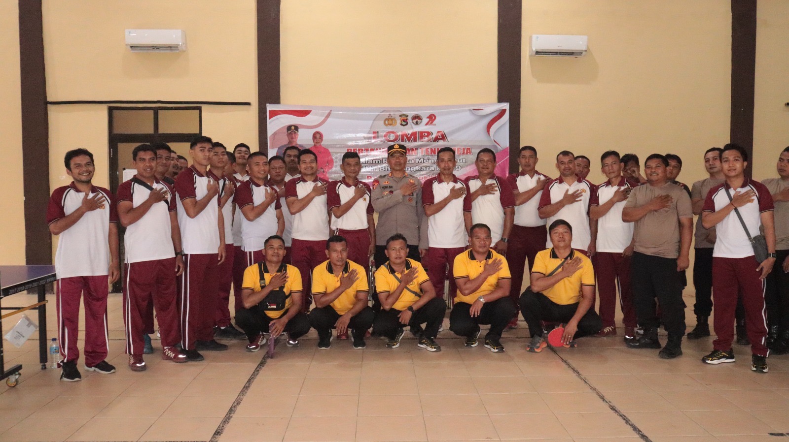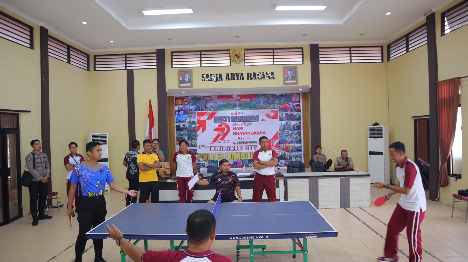 Lombok Utara – Dalam rangka menyambut Hari Bhayangkara ke-79, Polres Lombok Utara menggelar Turnamen Tenis Meja antar Satuan Fungsi yang dilaksanakan di Aula Sarja Arya Racana (SAR) Polres Lombok Utara pada Jumat (20/6/2025).
